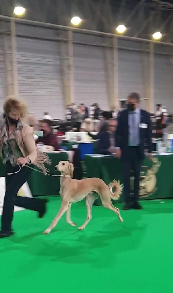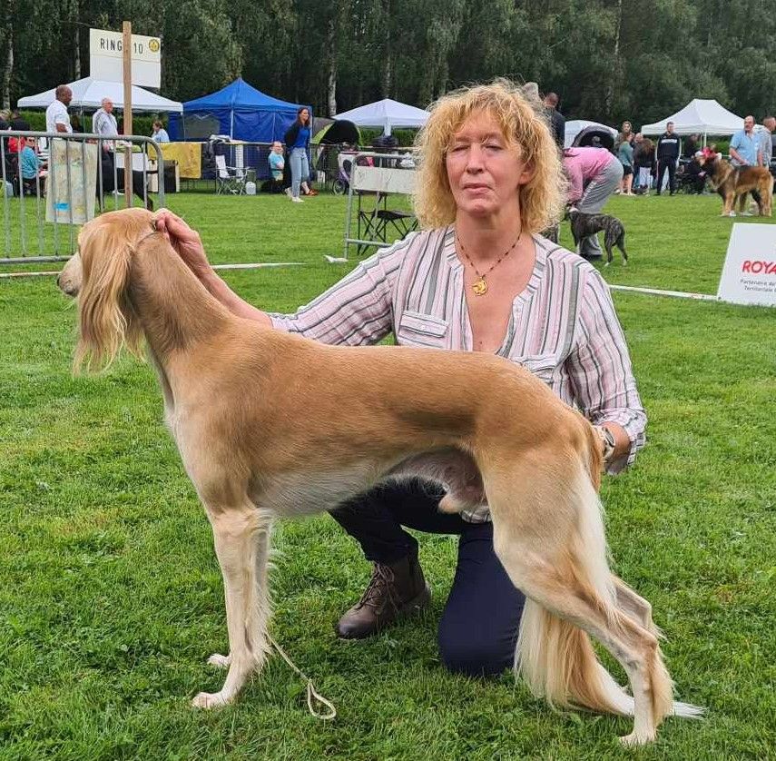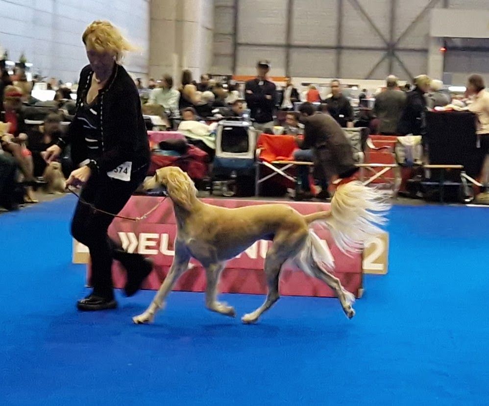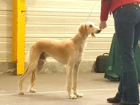 Saijaan renommé Saphir un excellent caractère , très joueur, un peu trop parfois sur les ring un Saluki toujours content et très gourmant.