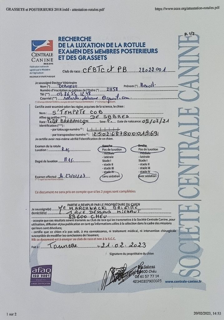 Chien Petit Brabançon S'tempete cob de Sabres
