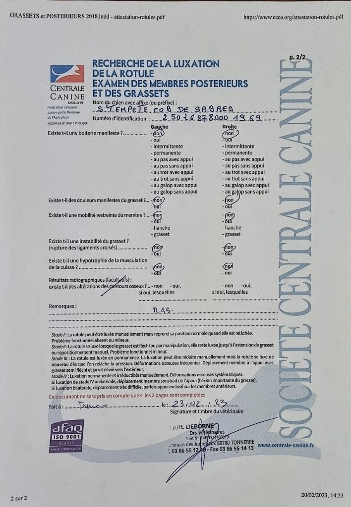 Pédigree de S'tempete cob de Sabres