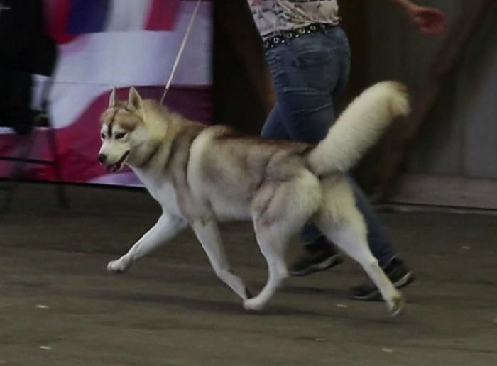 DCC Jolie tête Bel oeil en amande oreilles bien portées Belle encolure et ligne du dos Excellente épaule et angulation avt arrières Très bons aplombs ossature correcte pieds de neige Grosse mue Excellent mouvement bon port de jarret très joli type