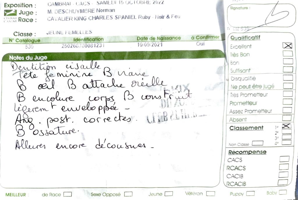 - Montluçon 2022 : 2ème Très Prometteur classe Puppy