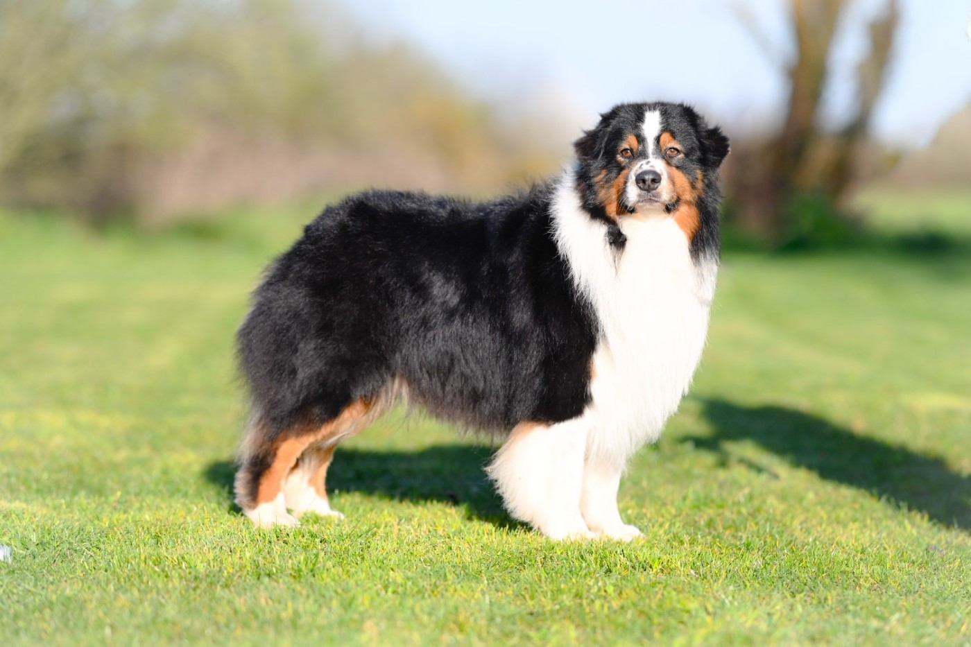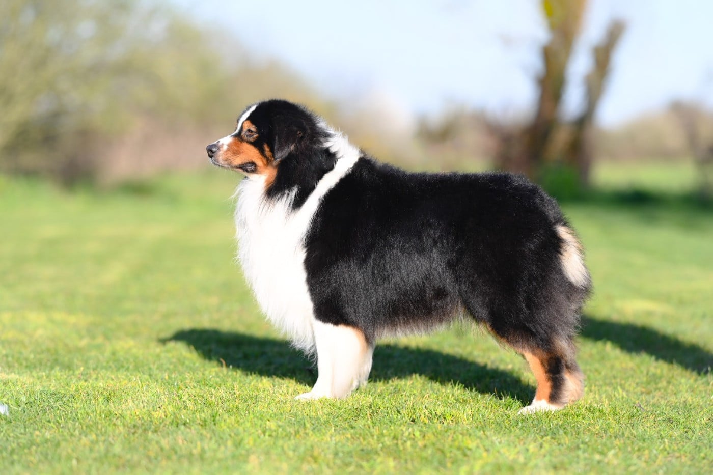 Taille moyenne, tête masculine, ligne de dos doit être plus forte, jarret un peu haut, mouvement typique, bon poil