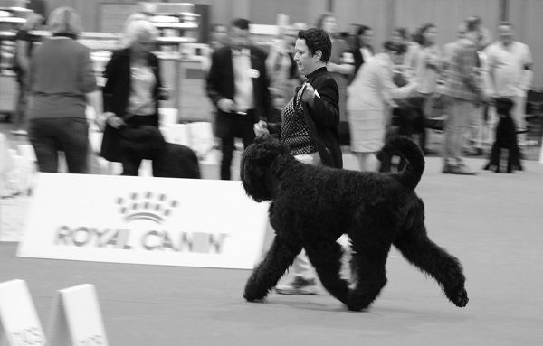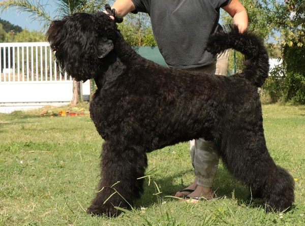 Côté 4 "recommandé", Lester est parfaitement structuré. Forte ossature. Excellente tête, yeux bien foncés oreilles bien en place. Excellent poil. Fouet droit et relativement court parfaitement implanté et bien porté tant en mouvement qu'en statique . Poitrine large bien descendue. Excellente angulation des pattes avant et arrières. Excellent mouvement.