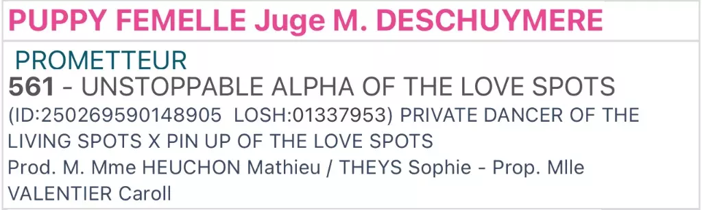 - Classe Puppy : TP Meilleur Puppy (BOB)
