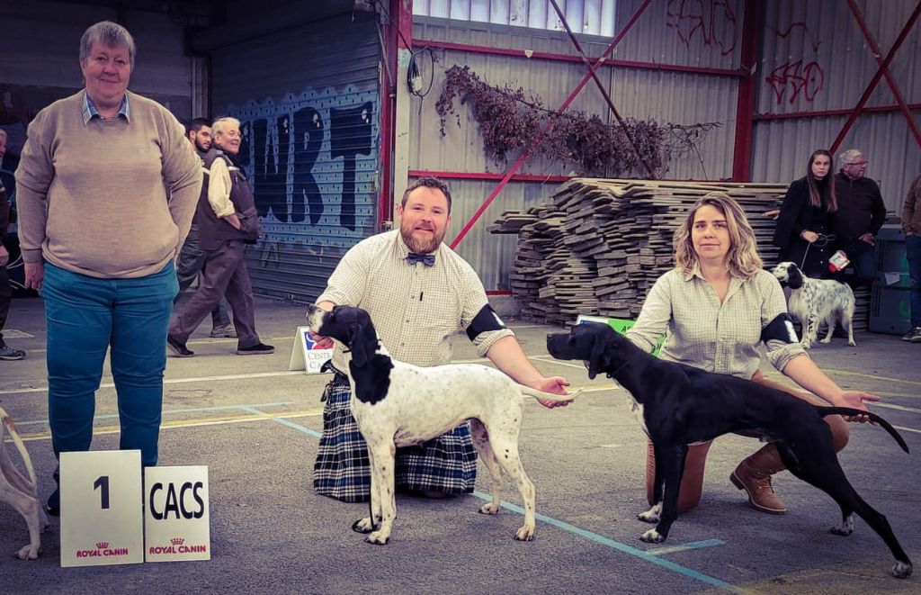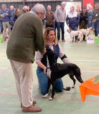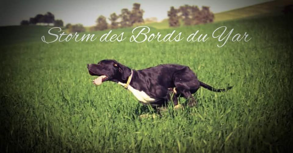 STORM, dès le découplé s'installe de suite et prend tout le terrain proposé, va prendre un point d'autorité, en grand style sur le couple précédemment levé par Prince, parfaitement sage envol et feu loin de moi, un seul perdreau vole sur les 2 du couple, relancé va indiquer le pietard restait dans la trace de roue de tracteur, le perdreau décolle à plus de 70 mètres, indication justifiée, on passe la route pour continuer le parcours, reprend d'emblée le terrain proposé, et va à l'extrême droite prendre un point avec,une posture tipique Pointer, les oiseaux volent à 15 mètres du chien parfaitement sage envol et feu. Relancé pour finir son temps, exécute 2 grands lacets magnifiques...1er Excellent CACT.Avec ce CACT STORM devient TRIALER de Printemps ce soir, et ouvre son titre de champion.Laurent Veyssière