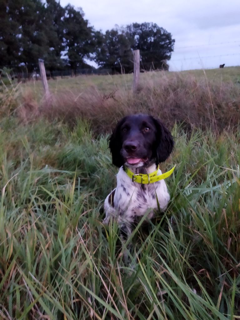 Déclarée sur la voie du lièvre à 4 mois, ses débuts en battue semblent prometteur. A 8 mois elle décroche un 1er prix en épreuve de broussaillage.