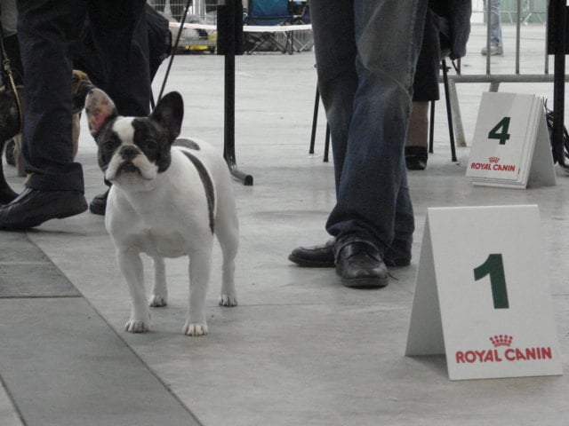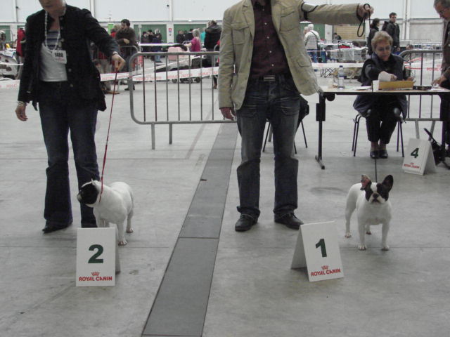 15 mois exellente femelle,10.2kgs exc crane,rides symétriques,exc oreilles bien portées,exc ligne de dessus,exc avant,membres antérieurs parallèle correct,exc pieds,angulations correctes,exc queue plaquée et bien placée,bonne démarche