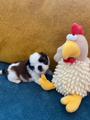4mois et demi; bébé très bien développé, excellente tête féminine, stop profond, oeil foncé avec expression attentive. Moustache et barbe bien développées pour l'âge, excellentes encolure etangulations av et arrière, queue bien attachée et portée. Mouvements très bien pour son âge, Très bien présentée.