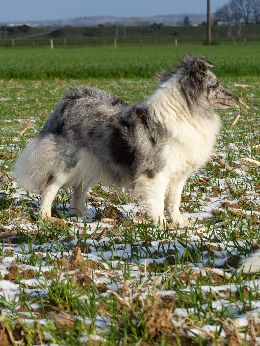 Très jolie femelle. Exc long fouet. très belle ligne de dos. Poitrine bien descendue. Epaule bien angulé . Jarret bien descendu. Belle sortie encolure. Stop présent. Bel oeil en amande. DCC. Exc port d'oreilles. Décolle légèrement les coudes. Belles amplitudes.