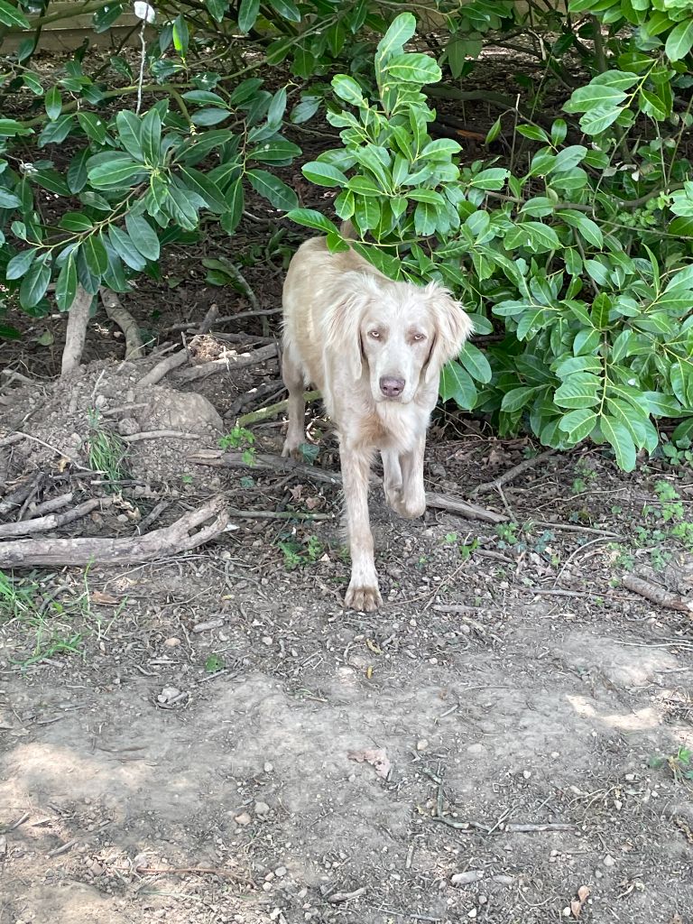 Chien Braque de Weimar Pandore d'azur aux cinq fusées