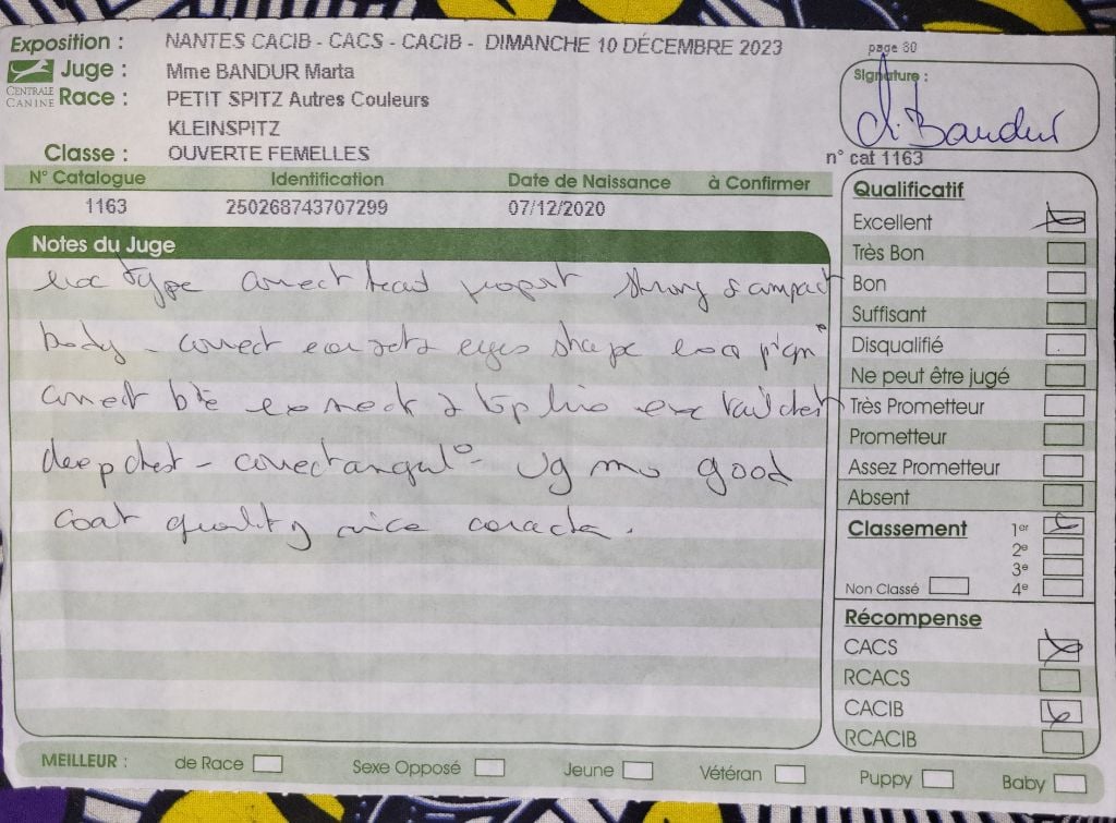 Manifestion : Spéciale cacs - Juge : Mme DAUVET Pary
