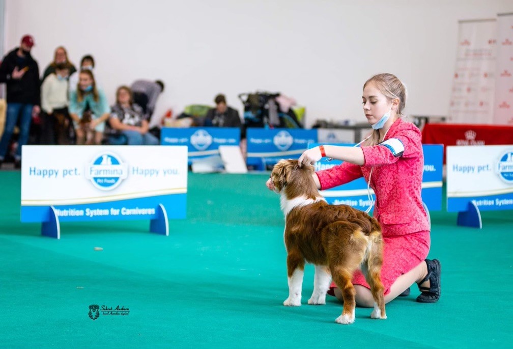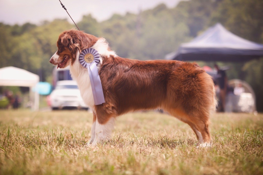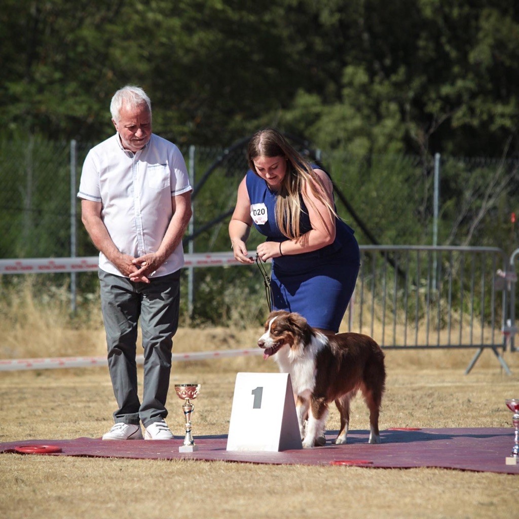Yuva nous a rejoint a l'age de 9 mois, tout droit venue de Russie. Nous n'avions absolument pas prévu d'accueillir un nouveau chien à ce moment là c'était même impensable surtout un rouge tricolore après la perte brutal de notre tout premier australien "Oriu" ( rouge tricolore) mais cette louloutte nous etait destiné ! C'est une petite chienne modéré de 48cm et 20kg avec un super caractère! Yuva est douce, gentille, courageuse, Curieuse, extremement dépendente a nous, doté d'une grande sensibilité.