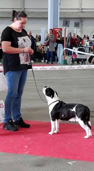 Exc prognathisme, Exc type et construction, gabarit moyen, Très bonne tête avec une Exc expression.Exc rapport crane/chanfrein. Stop correct. Exc largeur de museau. Narines bien ouvertes. oreilles bien portées. Exc ?il. Bel av/arr mains. Exc poitrine. Très bonne longueur de fouet. La démarche à l'arrière pourrait être plus active.