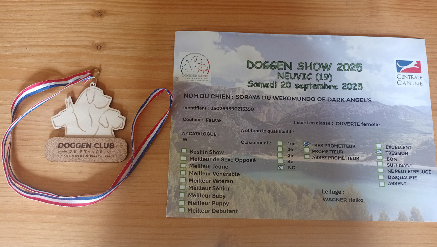Chien Dogue allemand Soraya Du Wekomundo Of Dark Angel's