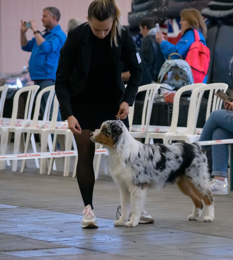 Bonne taille et proportions, bonnes longueur, museau, crâne correct, aplombs correct, bonne ligne de dos, bonnes angulations arrières, mouvements correct, très joliHandling by Kim Bussière et Ylan Tanji