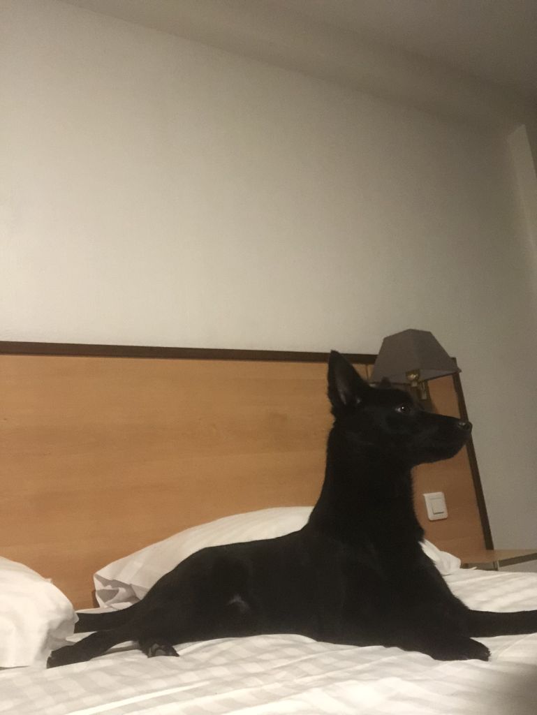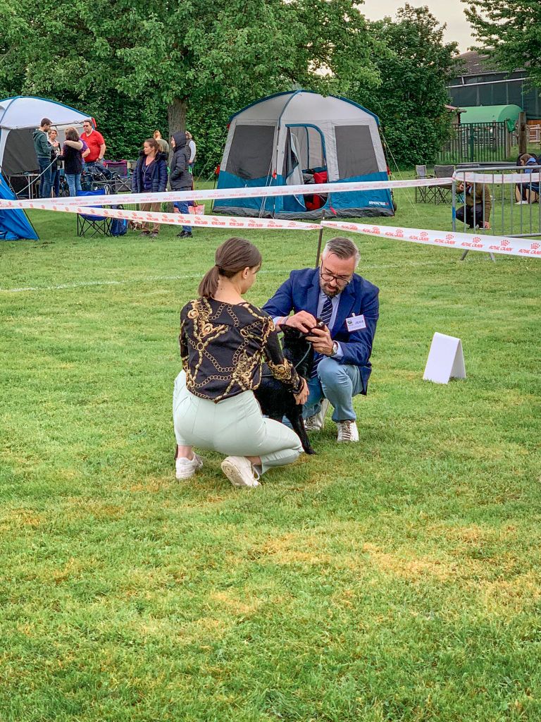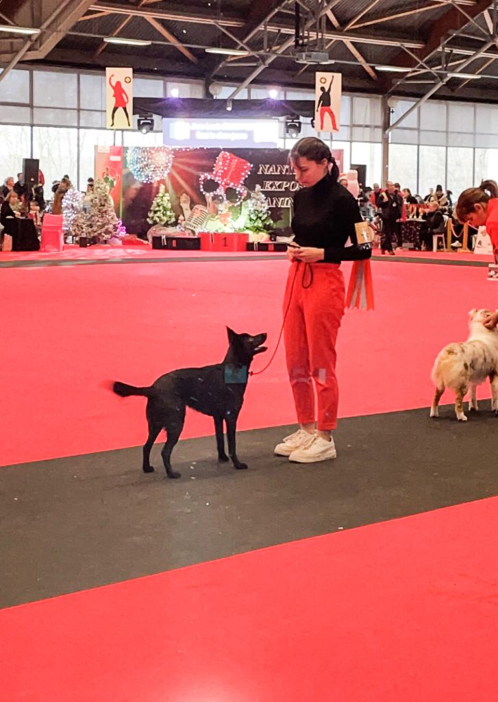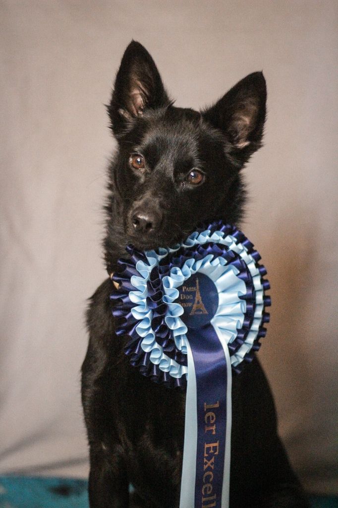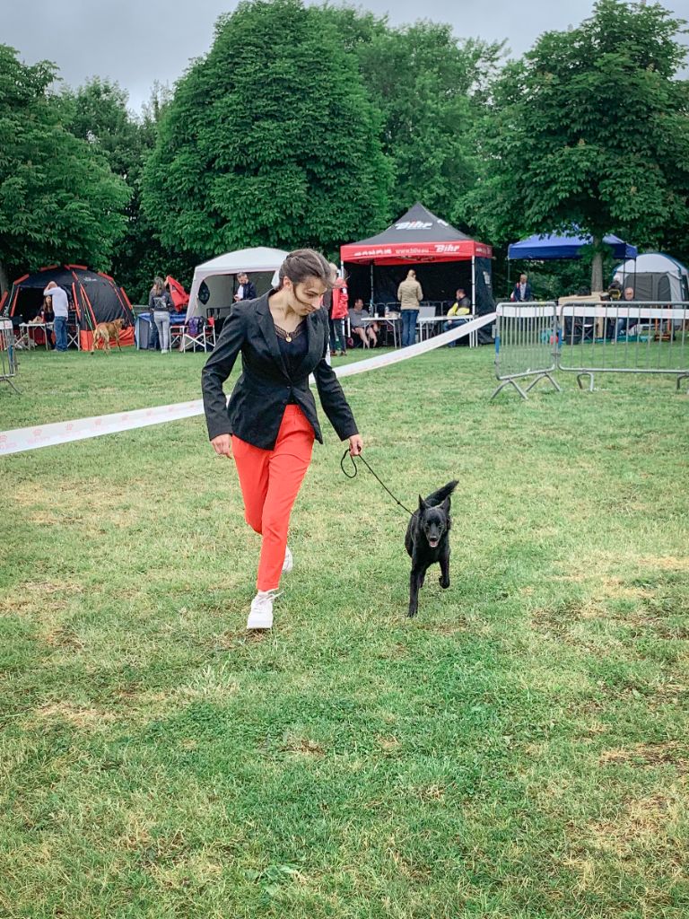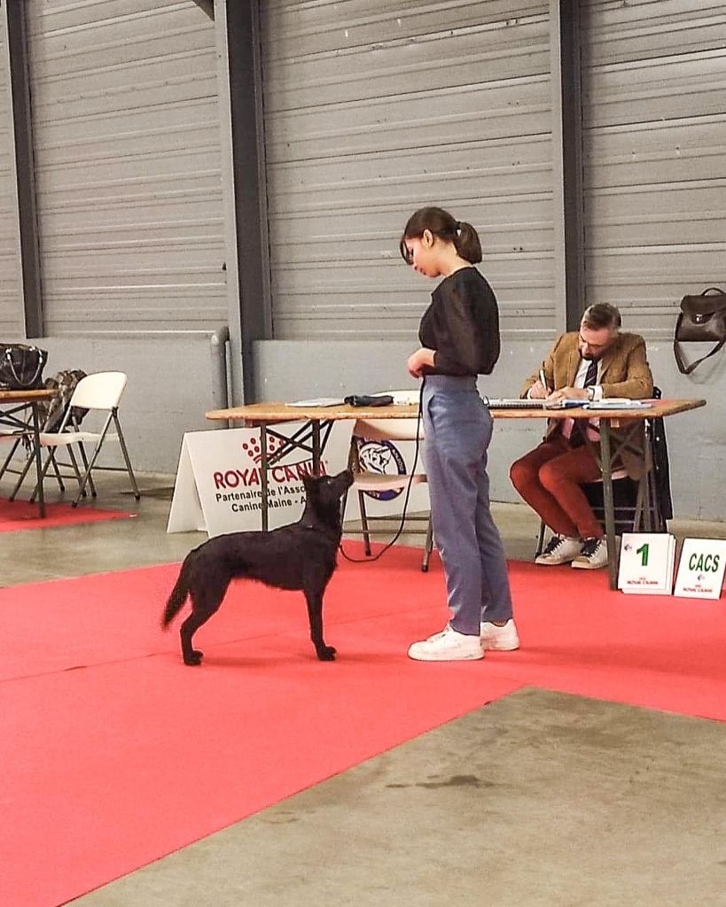 Très bon ensemble fémininExcellent ?il, excellentes oreillesDenture en ciseauxTrès bonnes épaules, Très bon volume de poitrineBon pied, jolie encolureTrès bonne arrière main, angulations avec un bon grassetBon fouet et croupeChienne très attentive, Marche bien