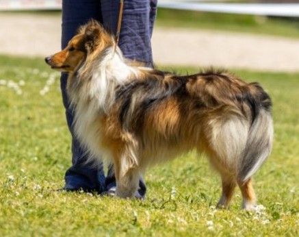 Aspect général : joli chien bien proportionné, exc tête expressiveTête : exc rapport crâne/chanfrein-crâne bien plat-joli port d'oreillesCorps : belle ligne de dos avec ossature légère pour sa tailleAllures : belles allures bergères bien couvrantes avec bonne prise de terrain
