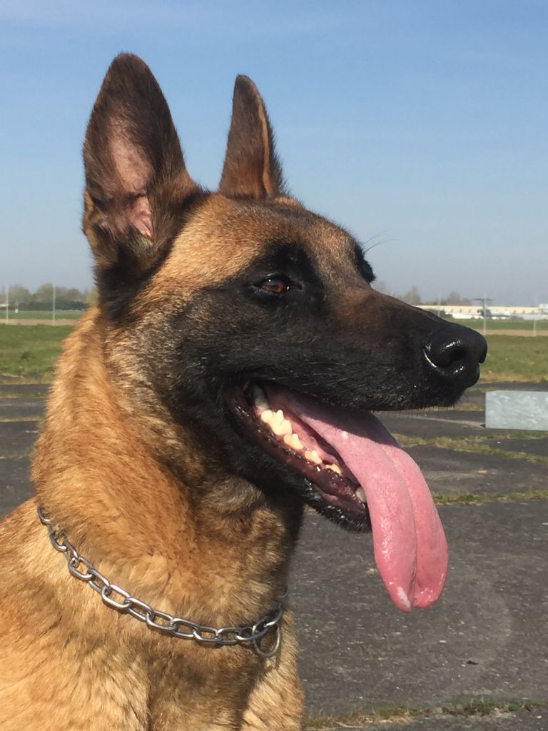 Chien Berger Belge Nikita 2 du blason a croix d'argent Des Crocs d'Artois