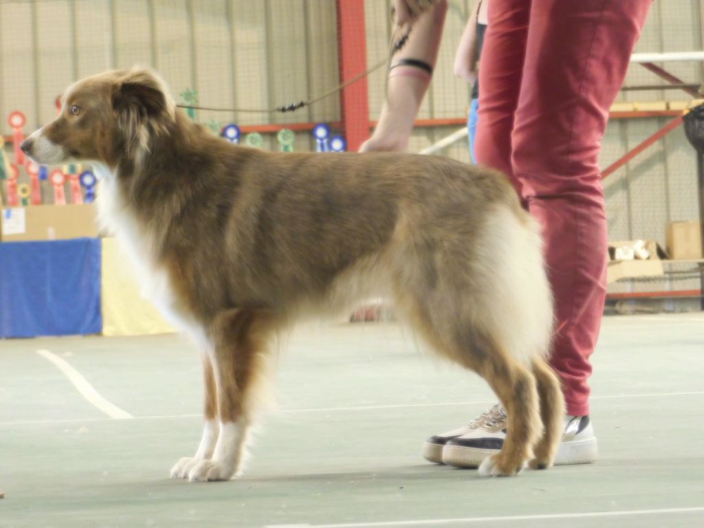 (Sur 7 participants)1 an - sujet féminin encore très juvénile - type et caractère correctsDCC - l'oeil un peu ouvert - Très bonnes oreilles - Très bonne encolure et avant mainsExcellent dessus - la poitrine doit se finir - Le corps est de bonne longueur - Très bonnes arrières mainsBelle fourrure - Bon mouvement - Excellent parallélisme
