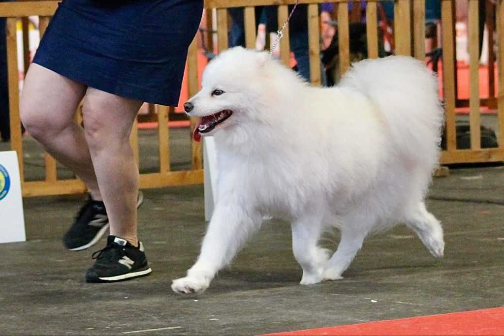 Bonne fourrure, angulations correctes, la queue pourrait être attachée plus haute, l'expression n'est pas typique, yeux ronds, petites oreilles, mouvement correct de profil, la poitrine est un peu étroite.