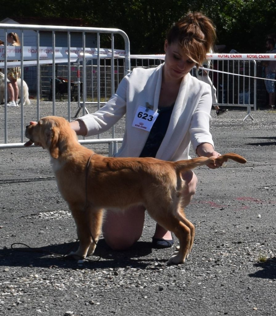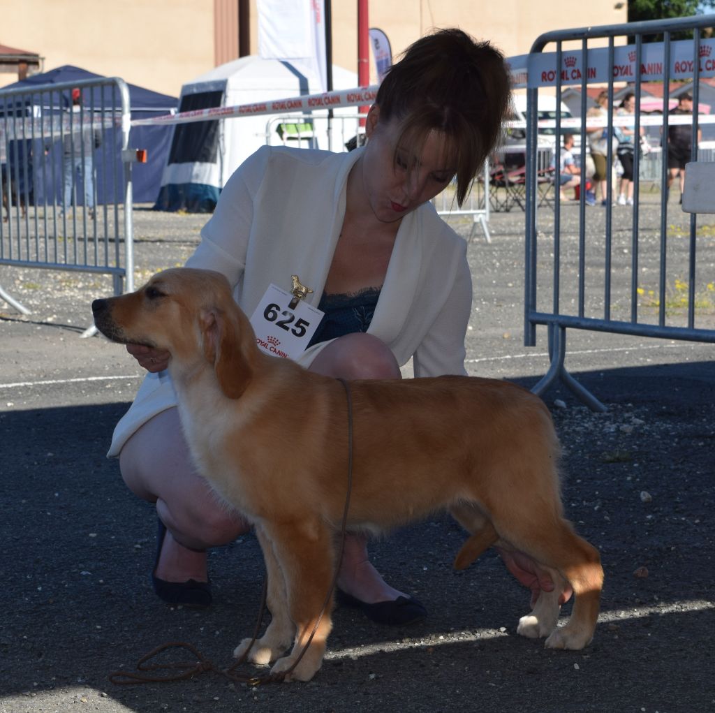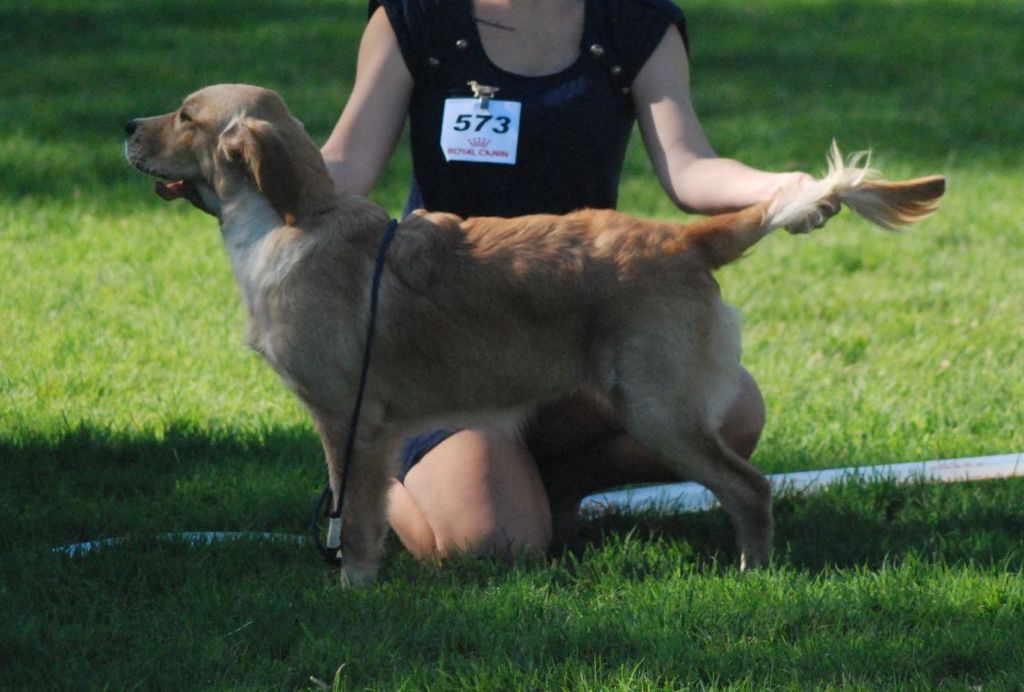DCC, tête bien dessinée, EXC pigmentation, oreilles bien implantées, encolure suffisante, EXC ligne dessus et fouet, aplombs corrects, EXC angulation épaule, la poitrine devra descendre et s?épanouir, allures correctes.