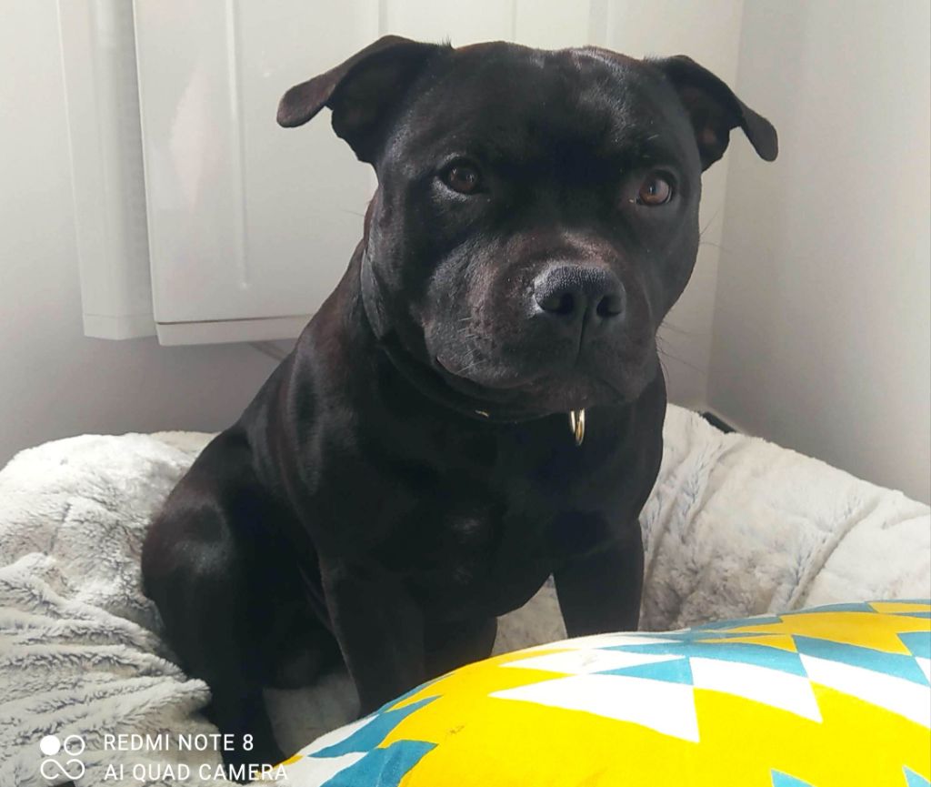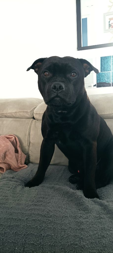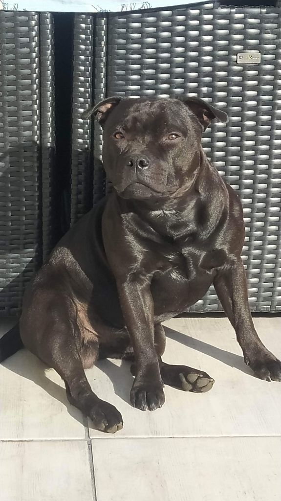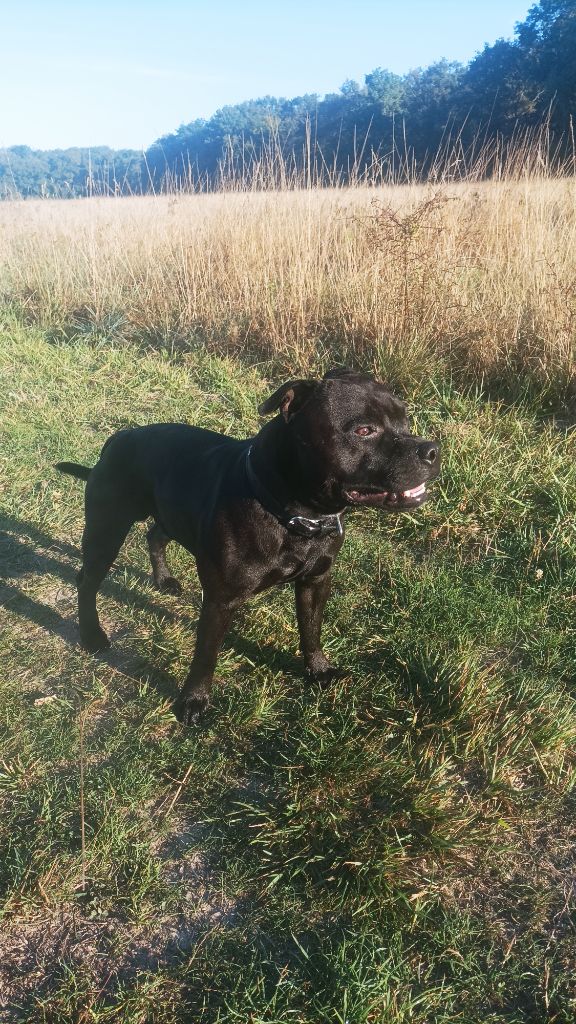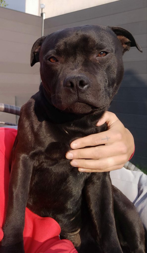 Smooth criminal at other side of stafford ( dit Gino) est de nature très calme et sociable. En excellente santée, il aime tout autant les siestes que les sortie en forêt. Chien remarquable avec les enfants.