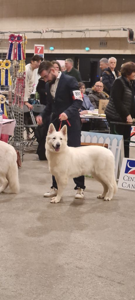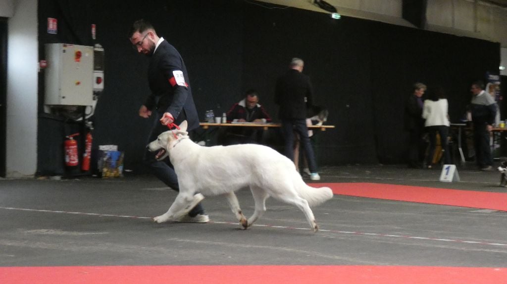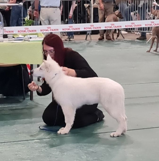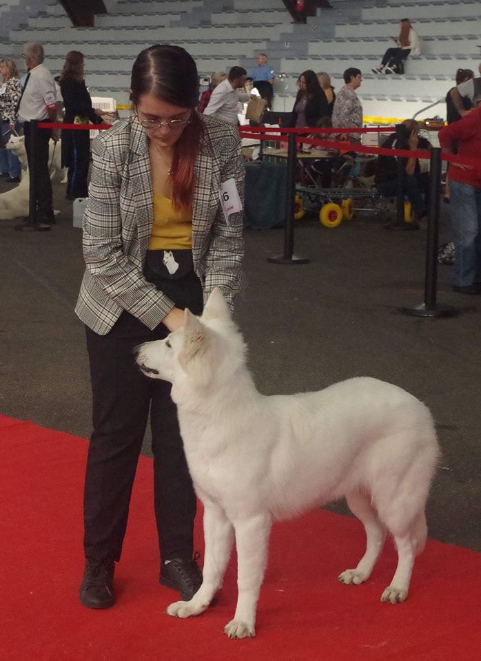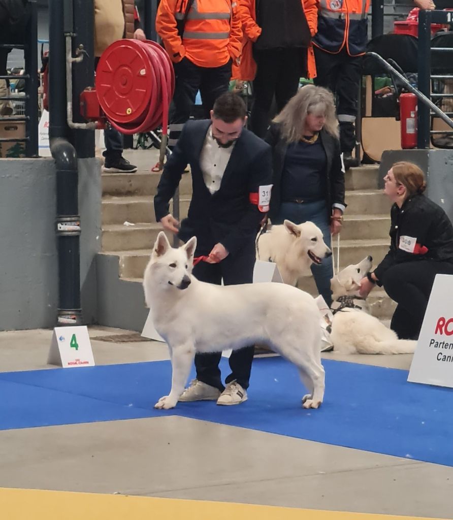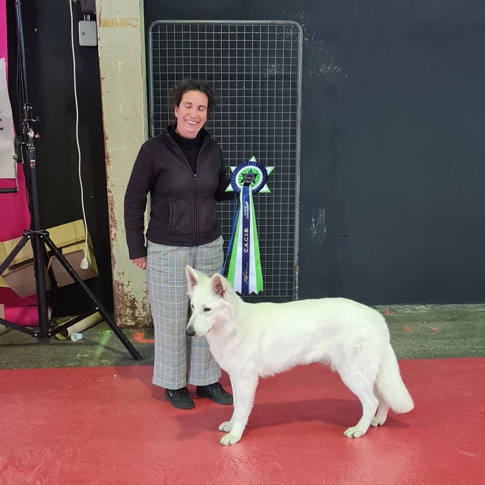 6 mois, DCC, Excellente expression, Bien présente sur le ring, Très féminine, Stop est peu prononcé mais visible, Truffe noire, Lèvres jointives, Oeil bien oblique en amande, Bonne couleur, Oreille extrêmement bien dresséesCorp: Rapport 12/10e respectée, Ligne de dos bien horizontale, Excellente poitrine et poitrail, Excellent ossature et pied, Laxité ligamentaire à revoir à l'âge adulte, Excellent port de queue, Bonne prise de terrain, Excellent caractère et présentation