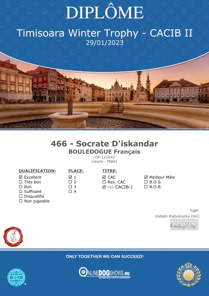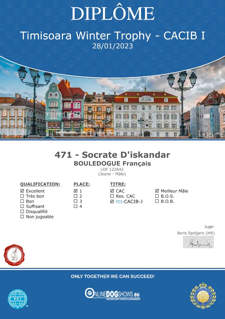 Timisoara Winter Trophy - CAC 28/01/23 : 1er Excellent - MEILLEUR de SEXE OPPOSE en classe jeune Juge : Alic Lejla