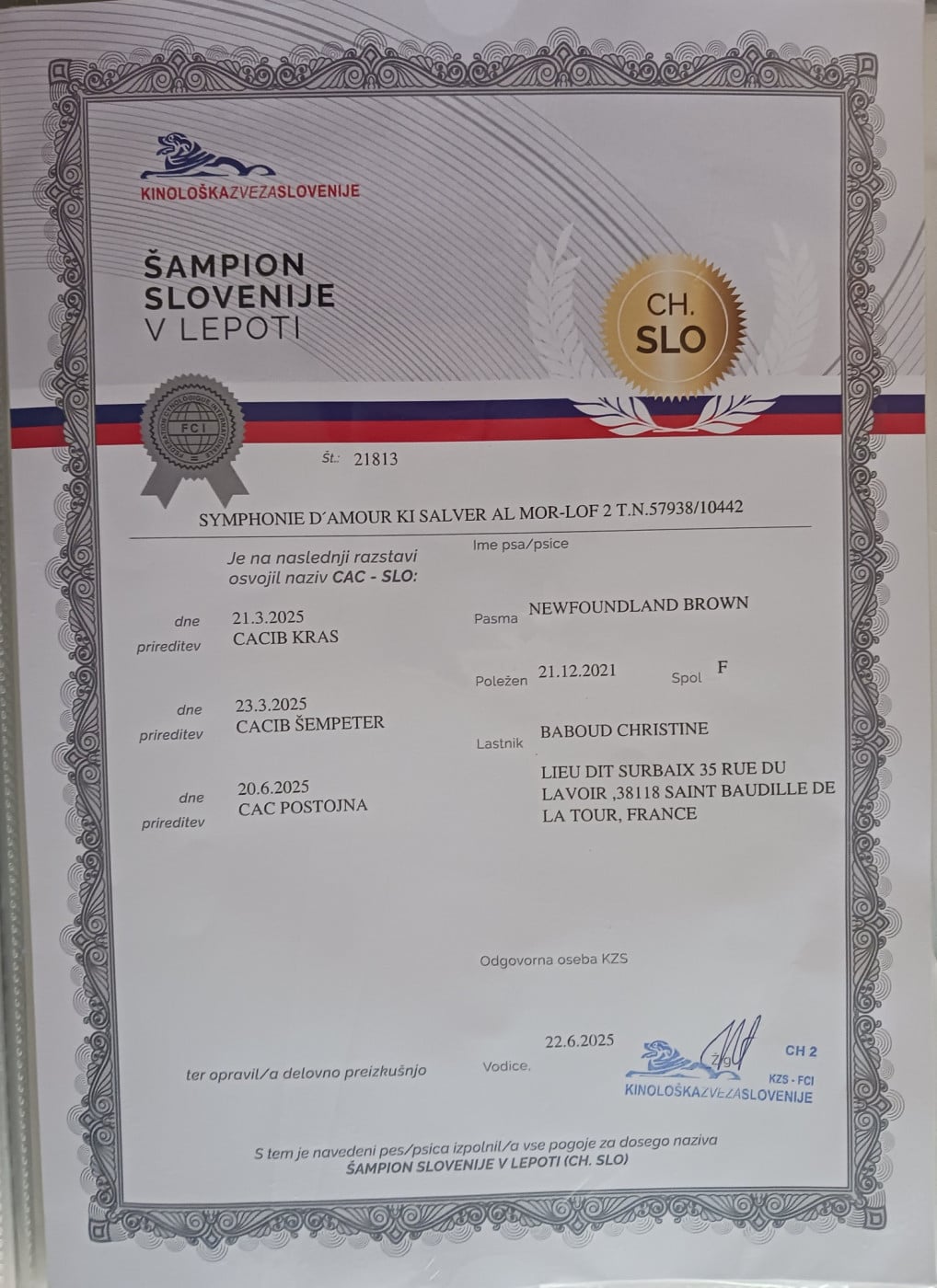 - Championne de beauté de Slovénie: CH. SLO.