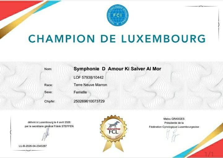 Chien Terre-neuve CH. Symphonie d'amour Ki Salver Al Mor