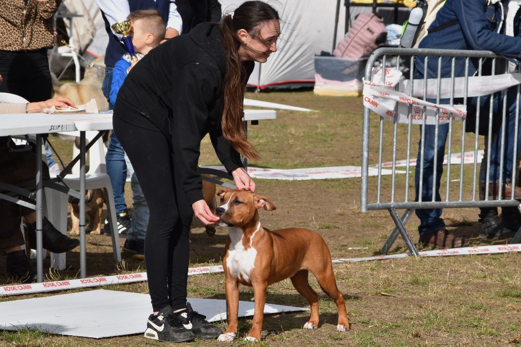 Powder est une très belle femelle issue de l’union de notre élégante Bertha et du superbe Luffy, frère de notre regretté premier mâle Amstaff, Ice.
