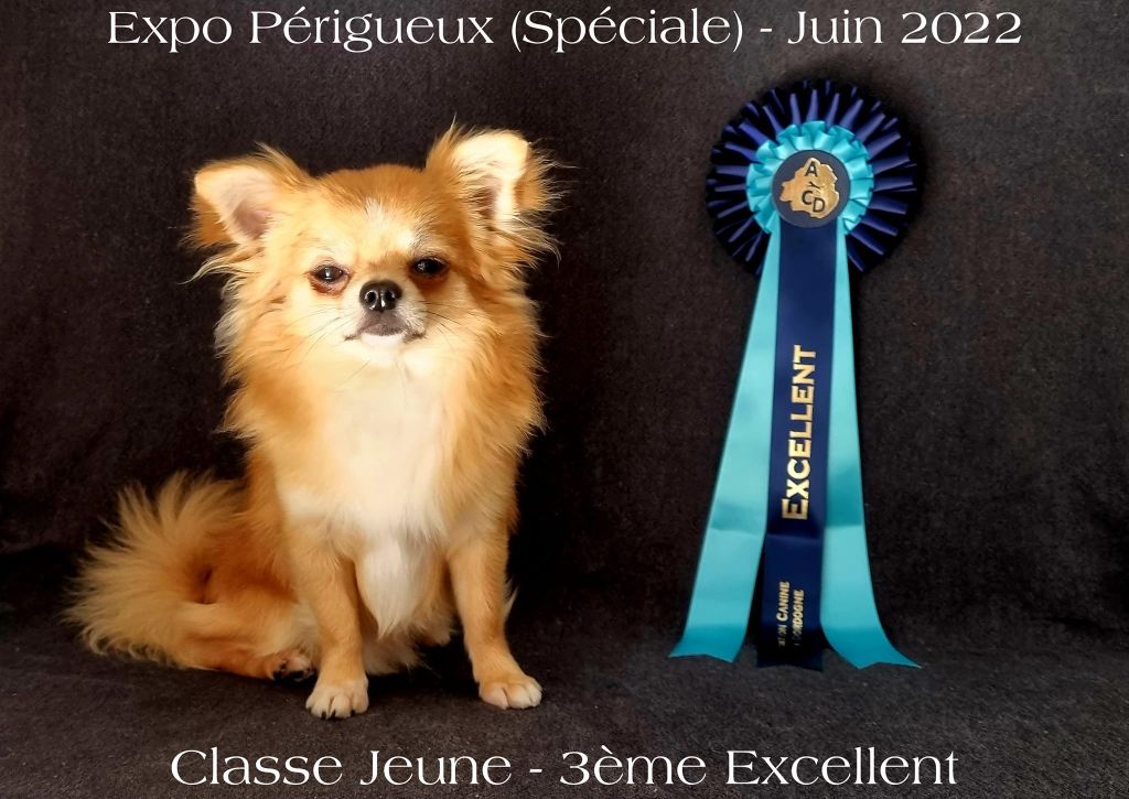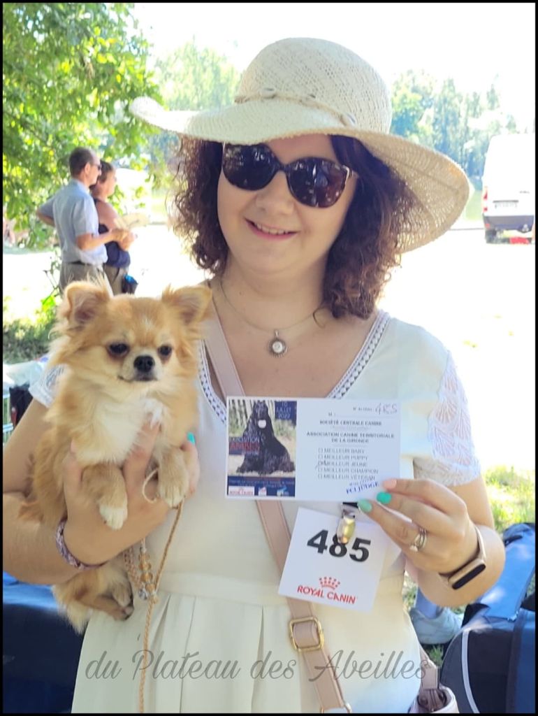 Présenté par Myriam (Classe Jeune)" 10 moisSujet typique, correct en type/tailleExc Tête, expression, crâne, stop, oreillesDentition complète en ciseauExc ligne de dos, queue bien attachéedéja bien carréPoitrine bien développée pour son âgeB. angulationsB. démarche "
