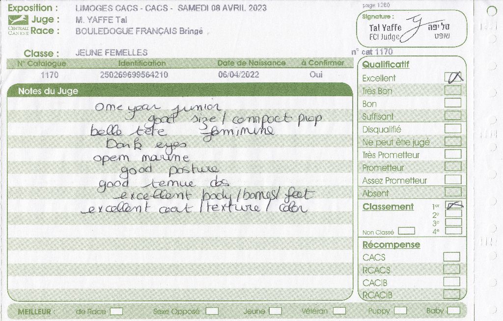 - 1er EXCELLENT - CACIB Jeune - MEILLEUR JEUNE