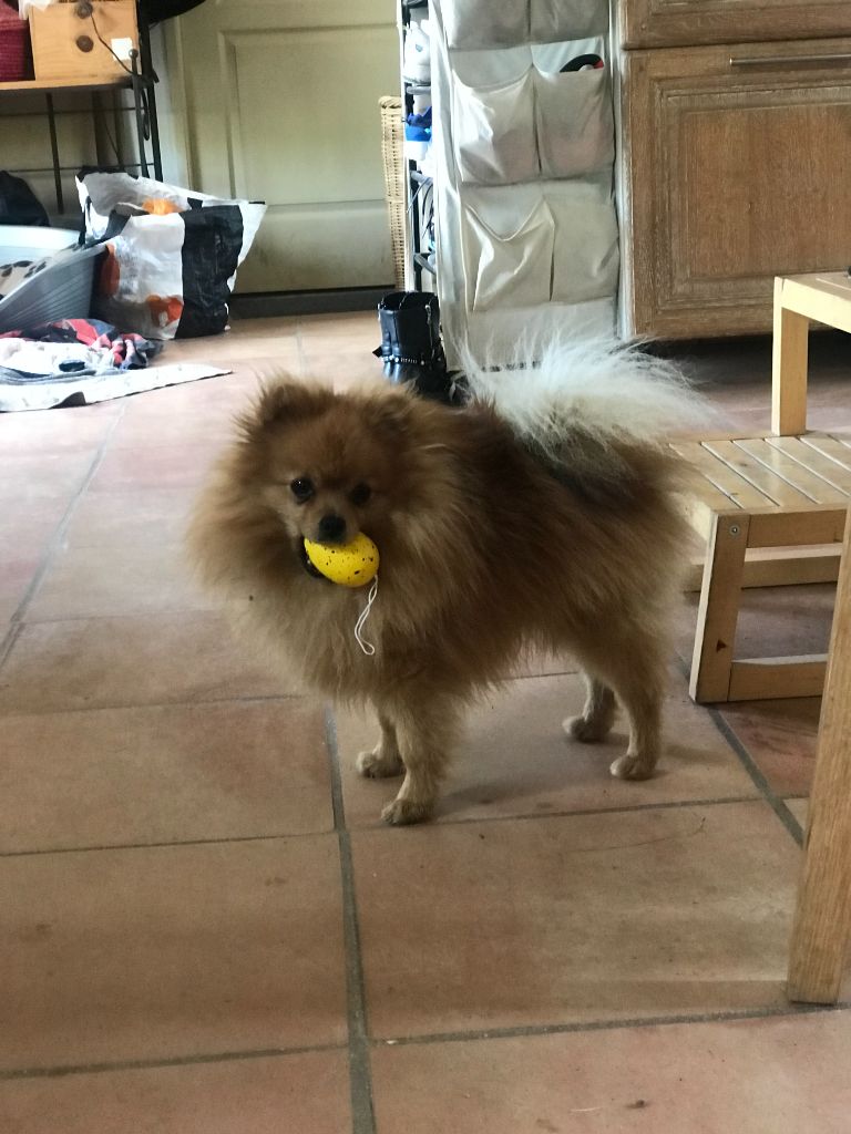 Il a déjà fait une portée, les chiots étaient magnifiques et typés pom. Il saillit naturellement.