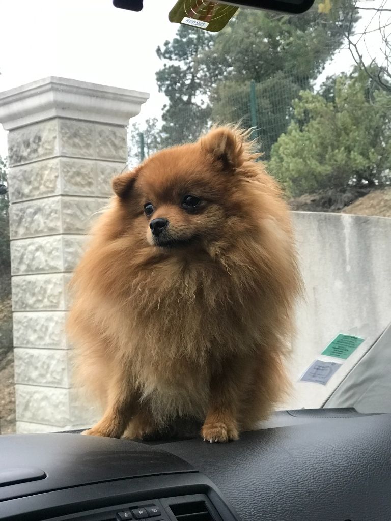 Rio est un mâle spitz nain confirmé de couleur fauve charbonné. Il a un caractère en or, très proche de nous et habitué aux chiens, chats et lapins.