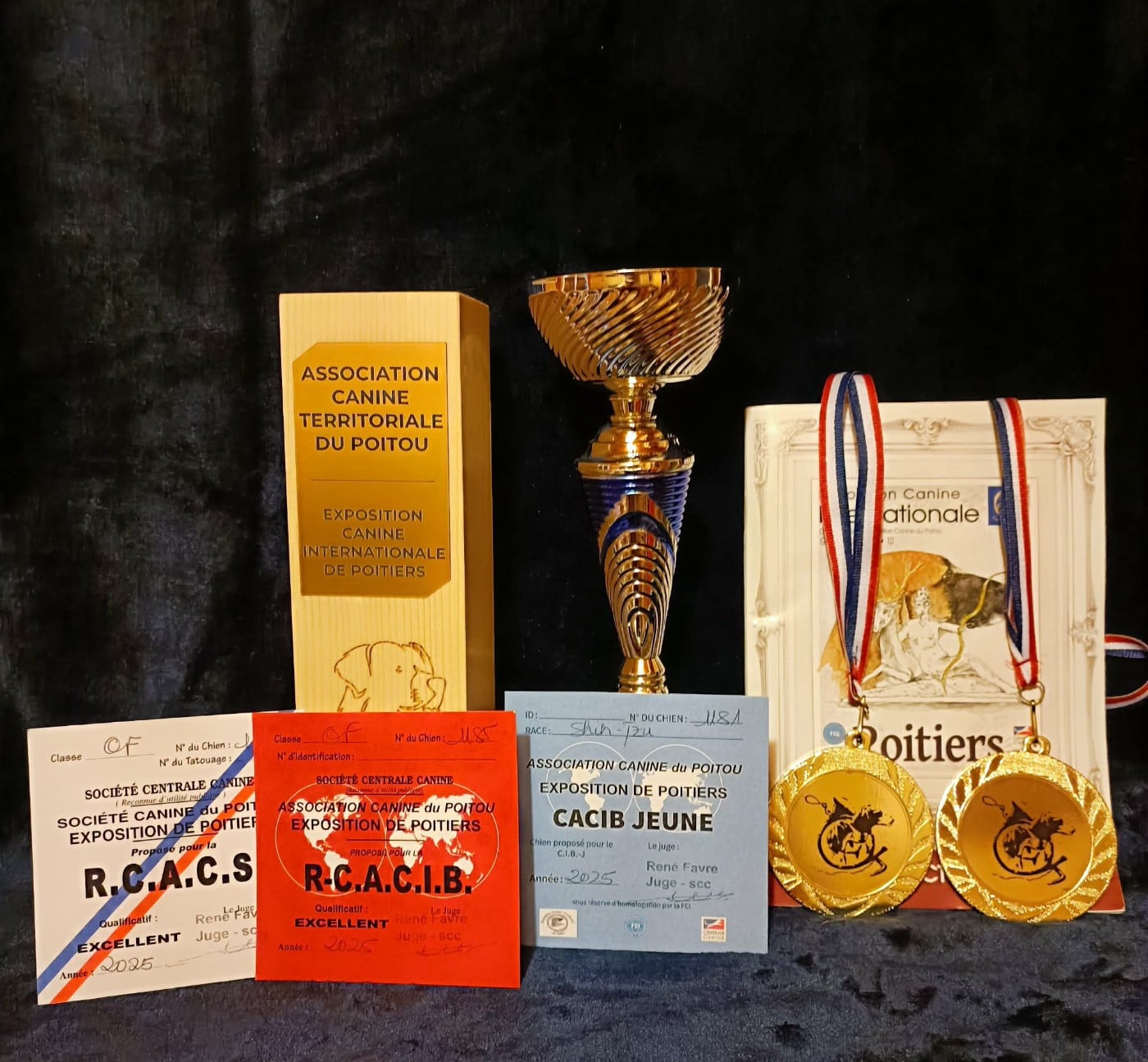 - **Champion des Expositions Nationales 2023** : Un autre titre majeur qui reflète la qualité et la beauté du chien selon les standards des expositions nationales.