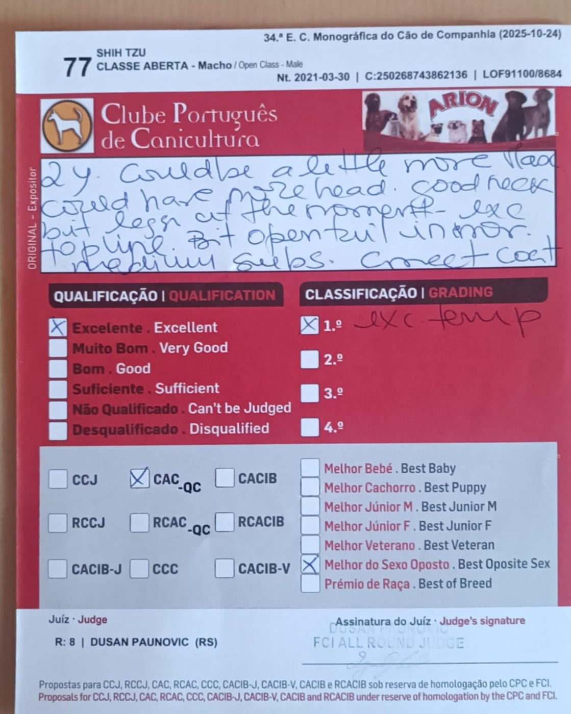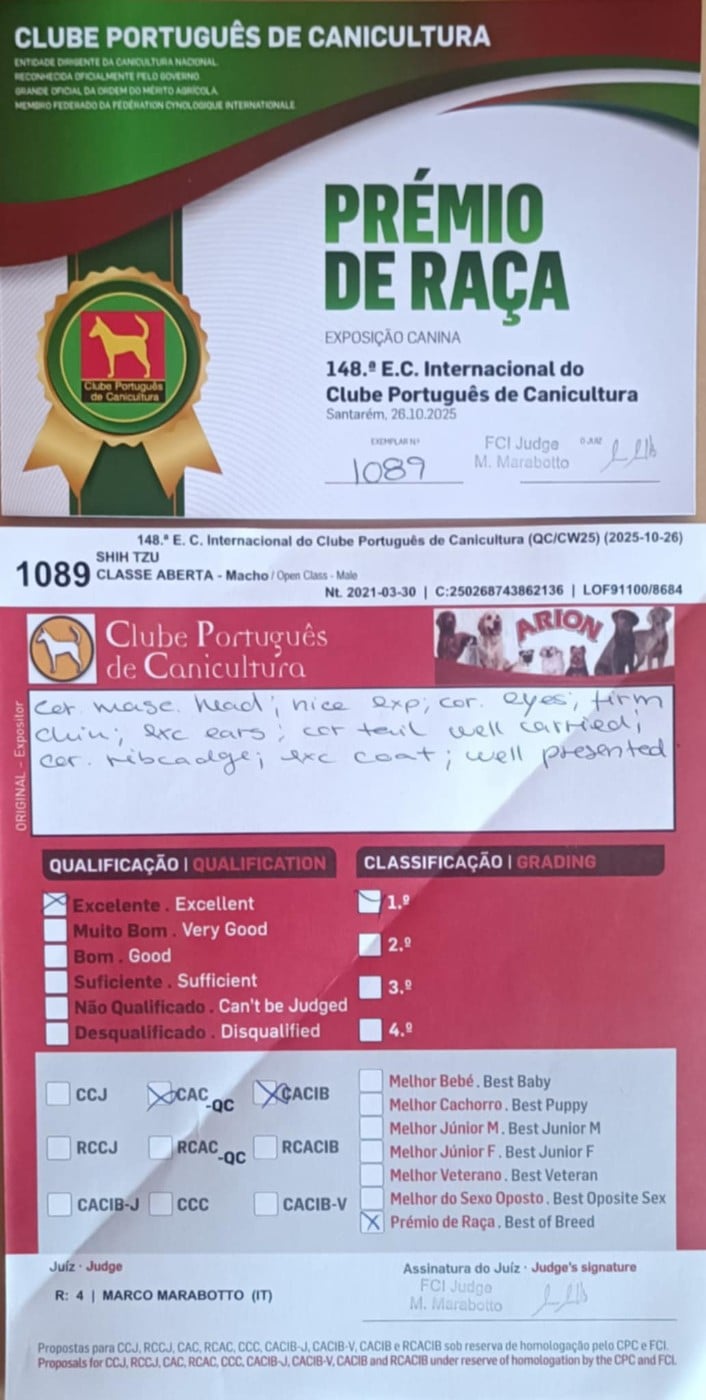 3. **Ces résultats témoignent de la qualité exceptionnelle de Shimao Tchang, tant en termes de conformité aux standards de la race qu'en termes de performance dans les compétitions.
