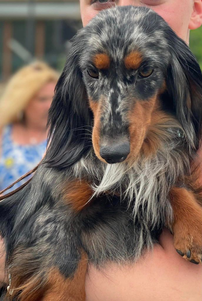 Chien Teckel poil long Turquoise bleue Du cap des embruns