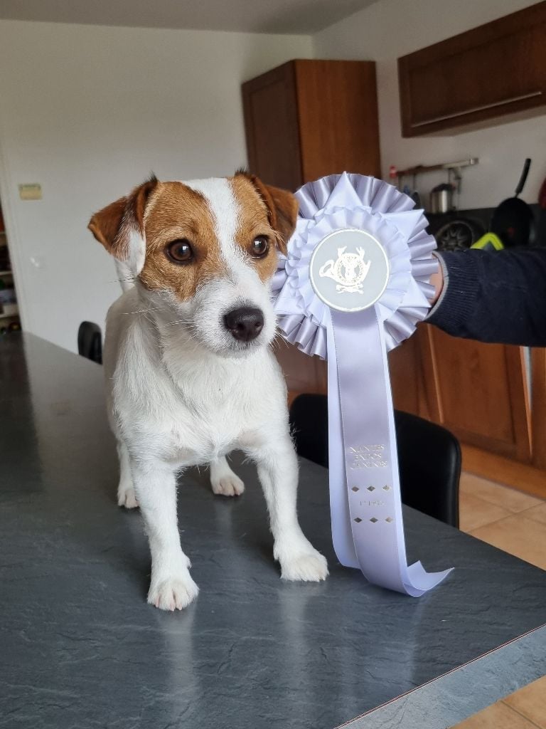 Meilleure femelle Jack Russell de l'expo juste devant sa mère (Bold and Kind Magie Blanche qui termine 2ème)Son frère Snow des Terres du Temple termine Meilleur jeune devant Samba. De bons résultats pour ma petite troupe pour cette régionale d'élevage.