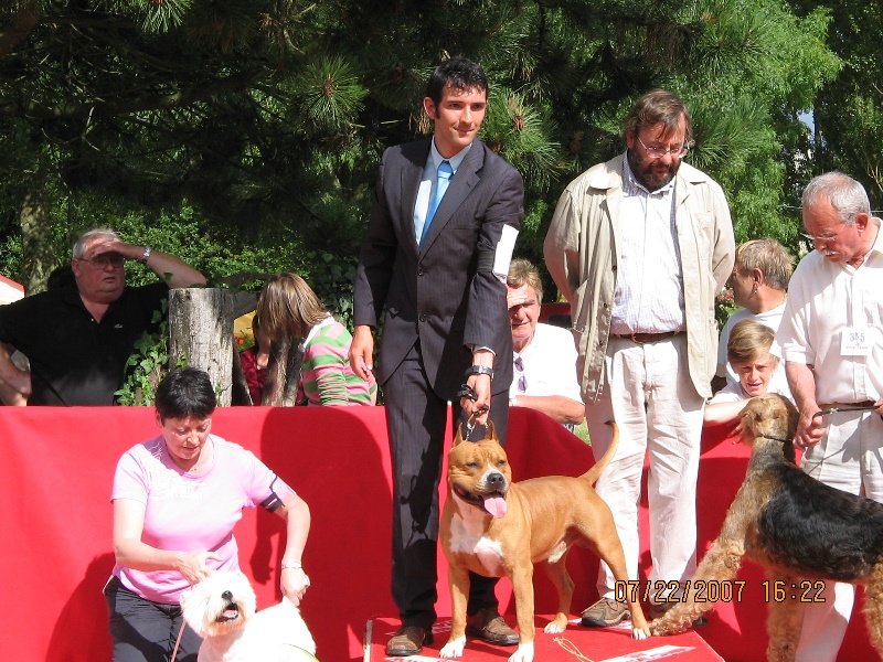 CACS CLASSE OUVERTE +MEILLEUR DE RACE +MEILLEUR DU 3EME GROUPE ET ENFIN 2EME MEILLEUR CHIENS DE L EXPO AVEC MR JOUANCHICOT SUR RING D HONNEUR