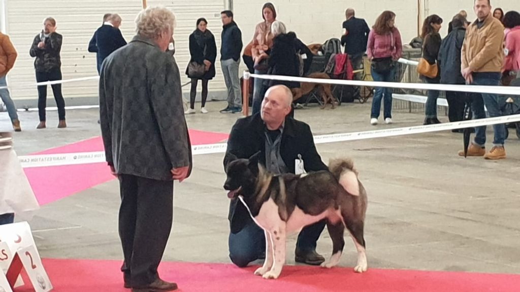 Très belle jeune femelle avec une superbe expression-féminine-harmonieuse. Super tempérament, Exc tête, dans le type, exc oreilles, ligne de dessus et queue -exc proportions - poitrine déja bien développée pour son age, exc épaules-antérieurs e pieds.Superbe mouvement, se présente et se déplace avec beaucoup de préstance.
