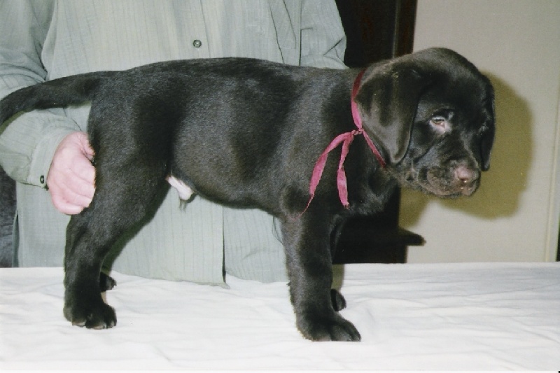 CLASSE PUPPY MALE: 1ER TRES PROMETTEUR, Meilleur de race Puppy.Chocolat, DCC, 7 mois 1/2, très bonne constitution d'ensemble, belle encolure, jolie tête, expressif, oiel correcte, bonne attache et port de d'oreille, bonne ossature, excellente angulation, bonne attache de fouet et correcte, jolie allure, profil et aller retour chien très prometteur.