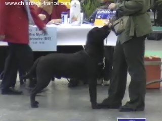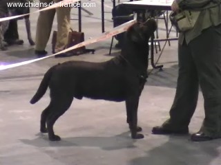 3éme excellent en classe ouverte mâle.Mâle de 2 ans chocolat de bonne couleur. TB texture de poil, couleur foncée. B tête, expréssive, B couleur d'yeux, TB encolure. TB ligne de dos et attache de queue, cage thoracique bien descendue mais peu encore se développer, un peu long des reins.B longeur d'AV bras, mais un peu droit, épaule B angulé, B ossature et pieds.TB angulation arriére, mais manque de 2 éme cuisse.Bon mouvement