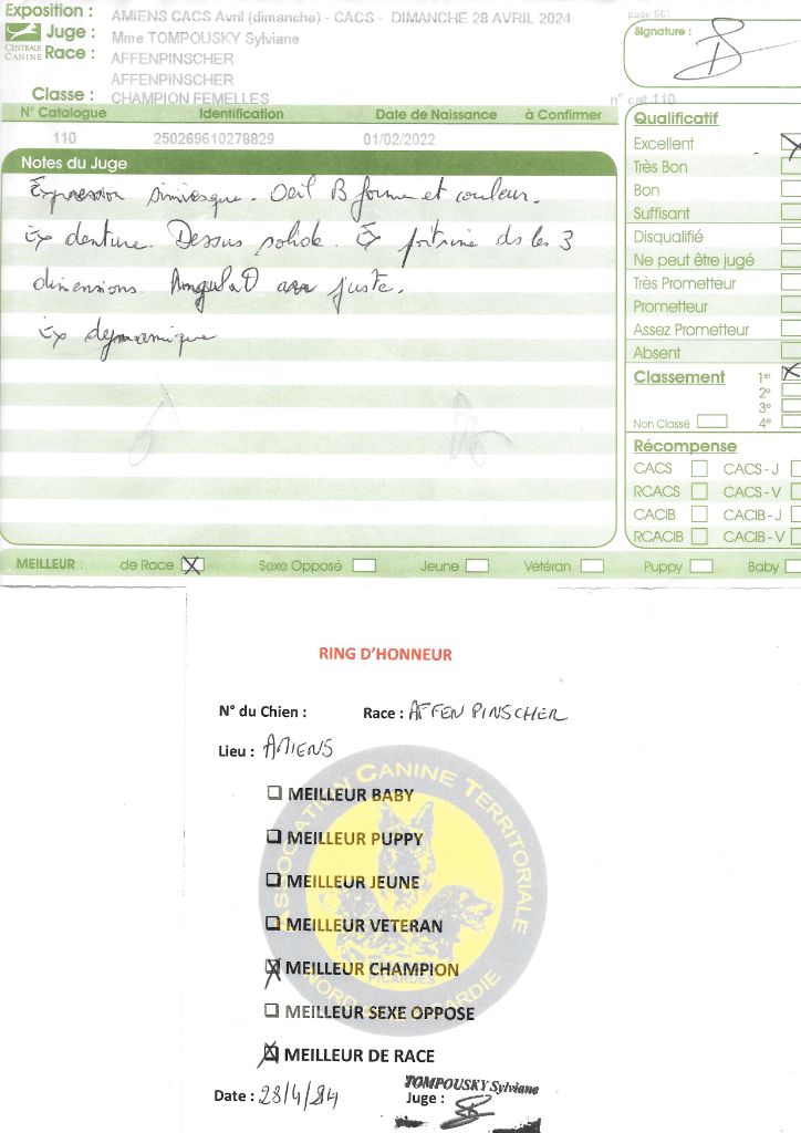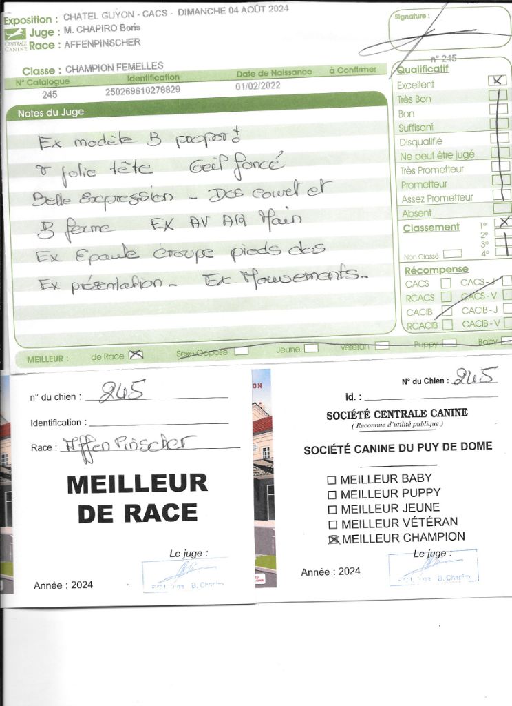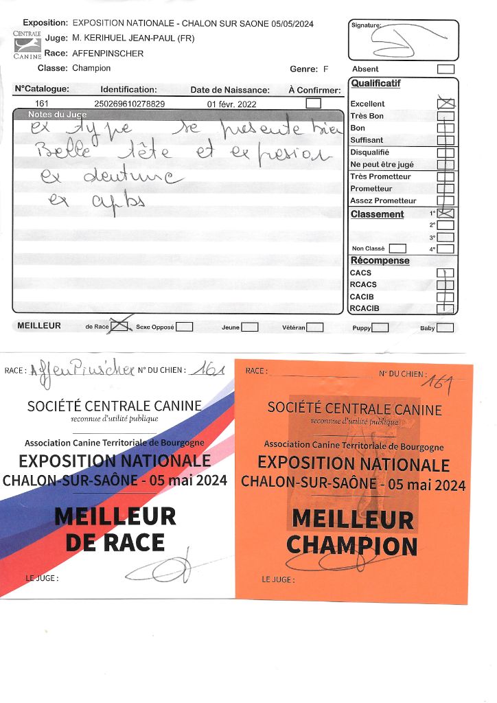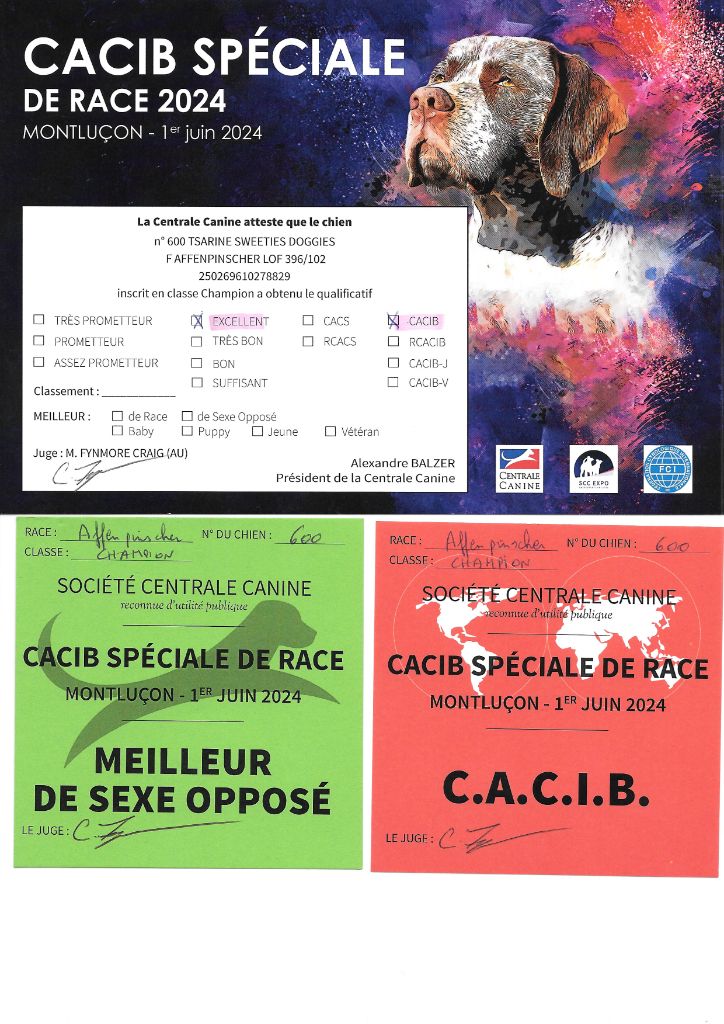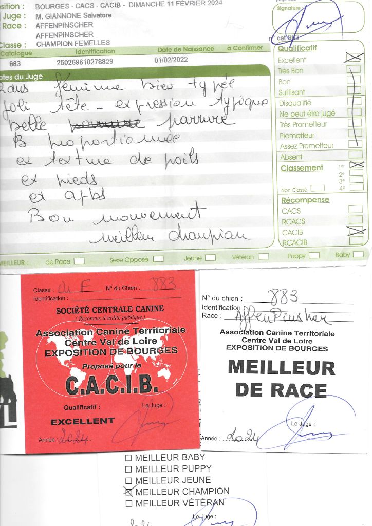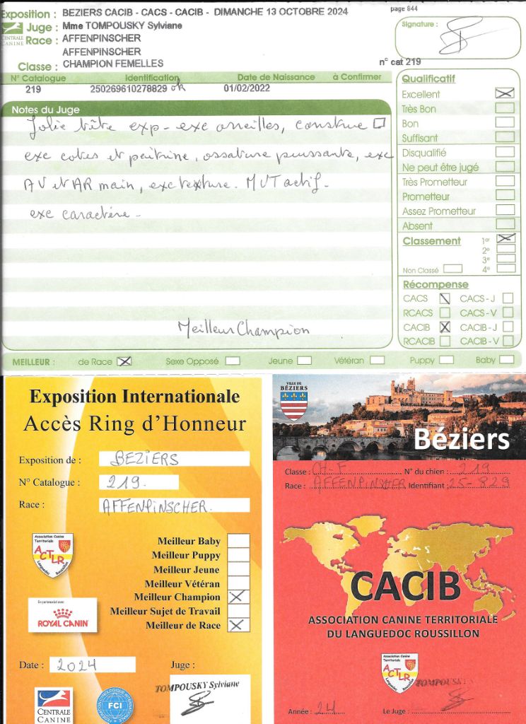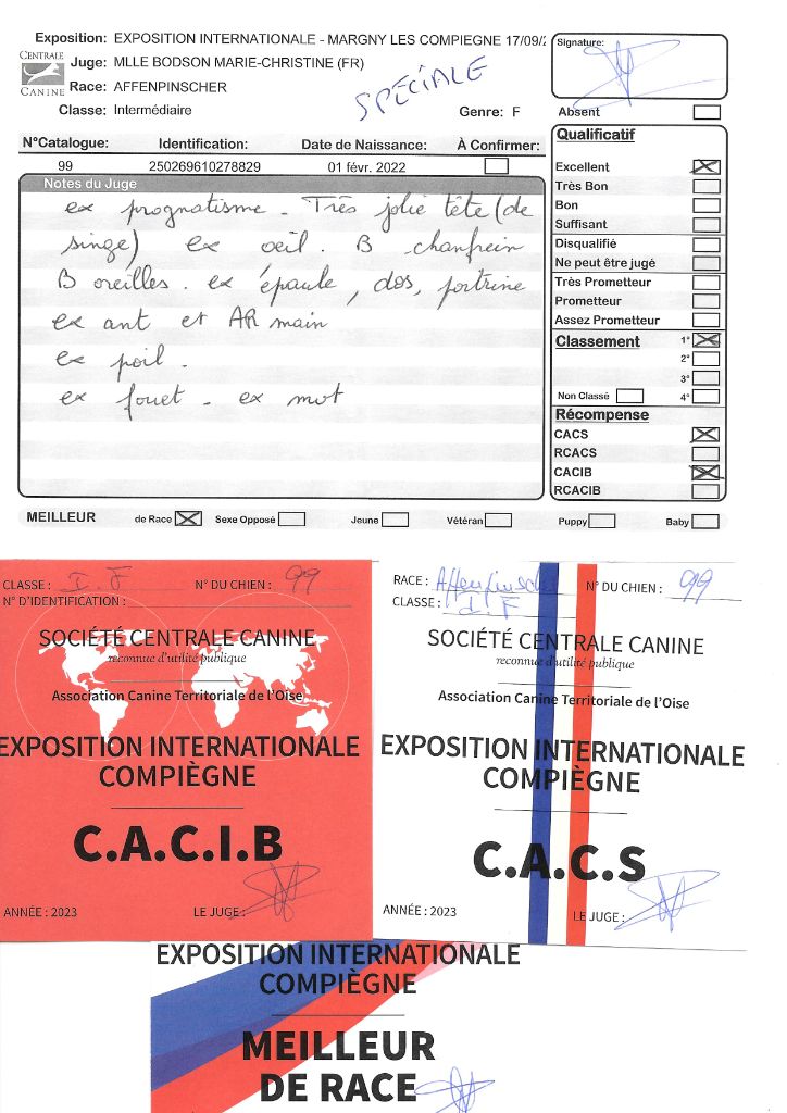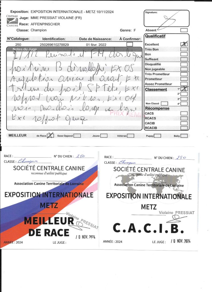 - CACIB ,MEILLEUR DE RACE , MEILLEUR CHAMPION