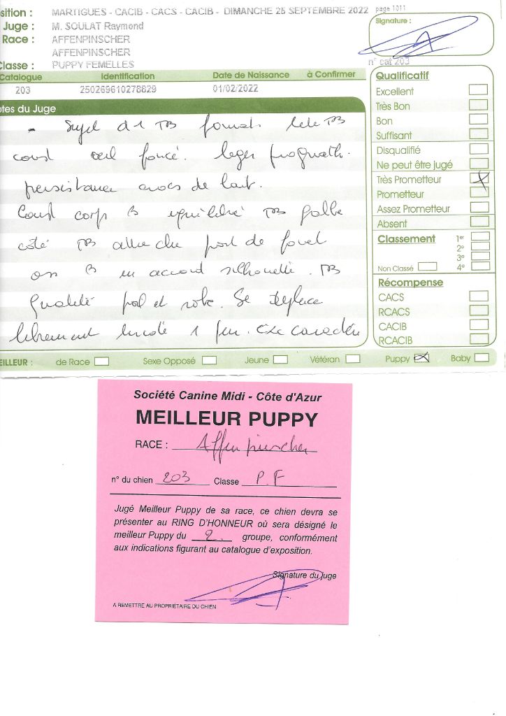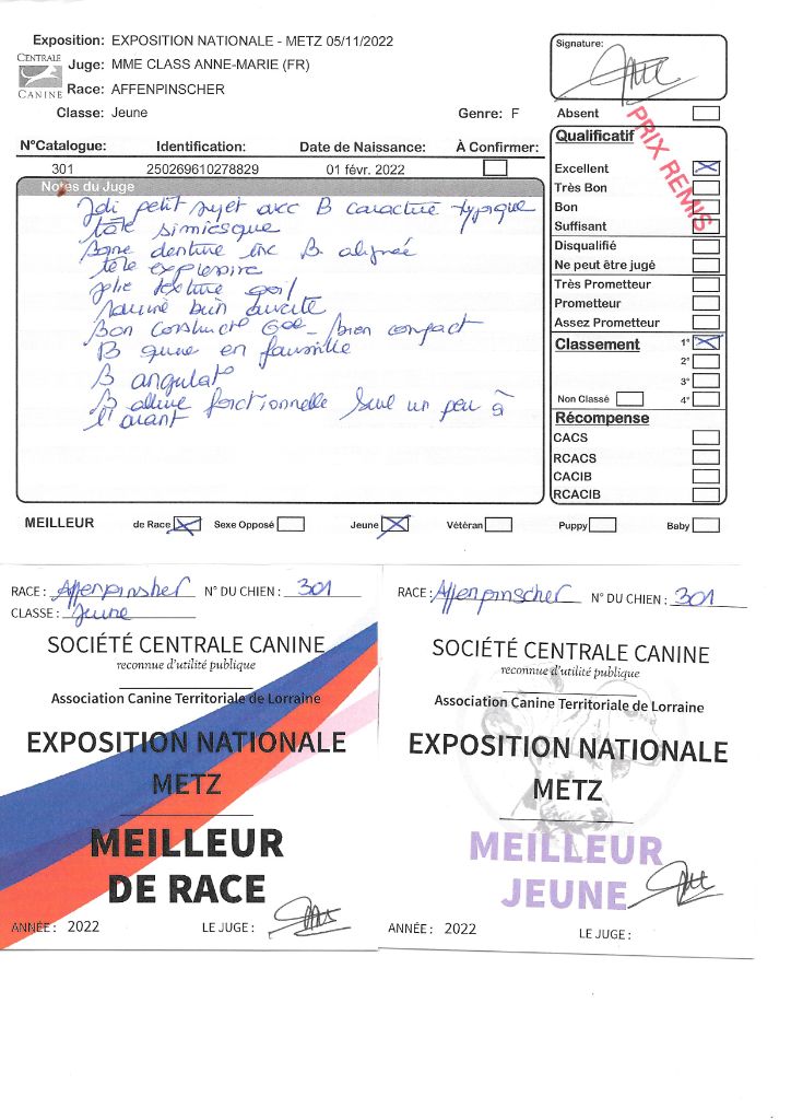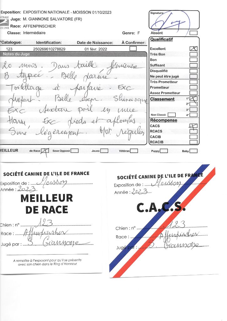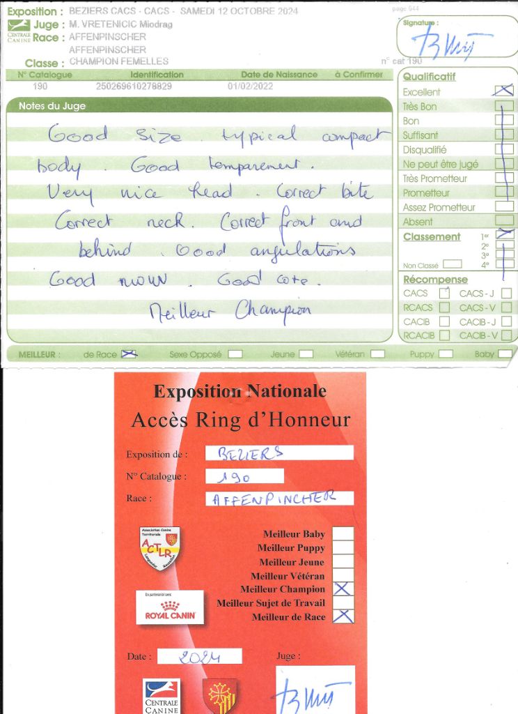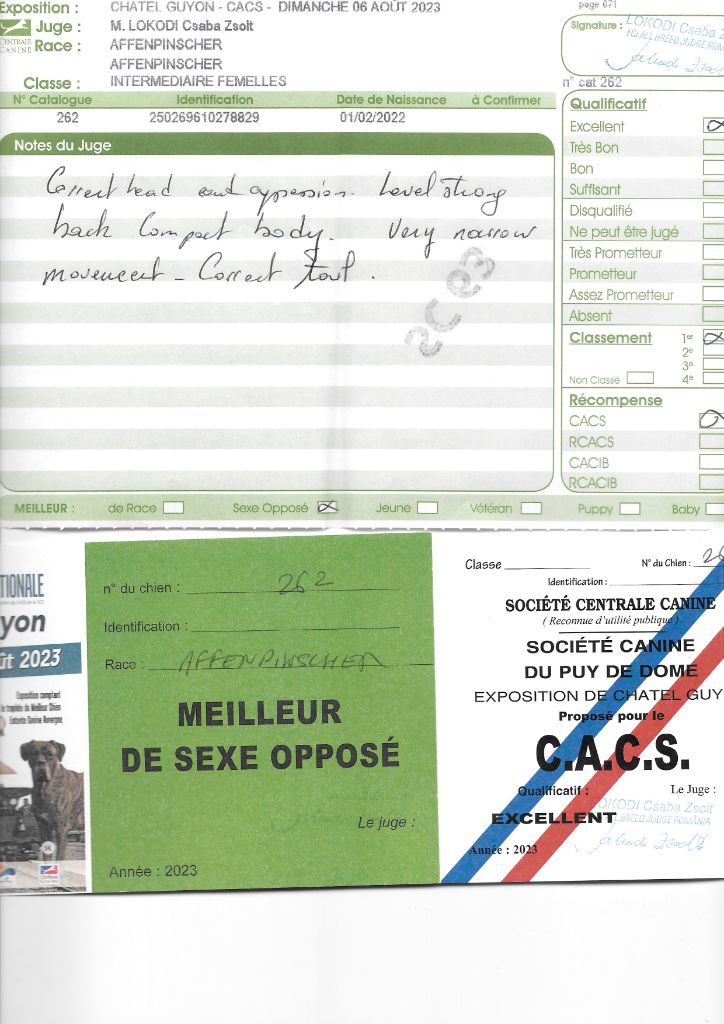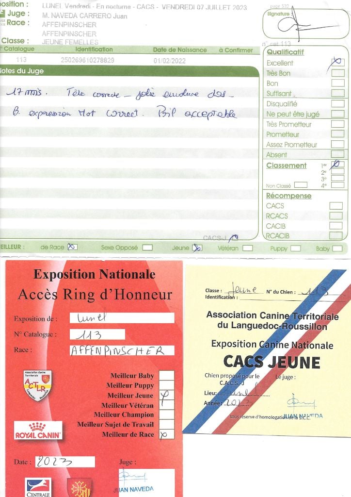 - MEILLEUR JEUNE , MEILLEUR de RACE , CACIB JEUNE