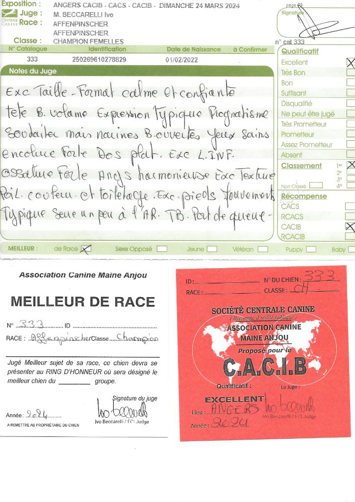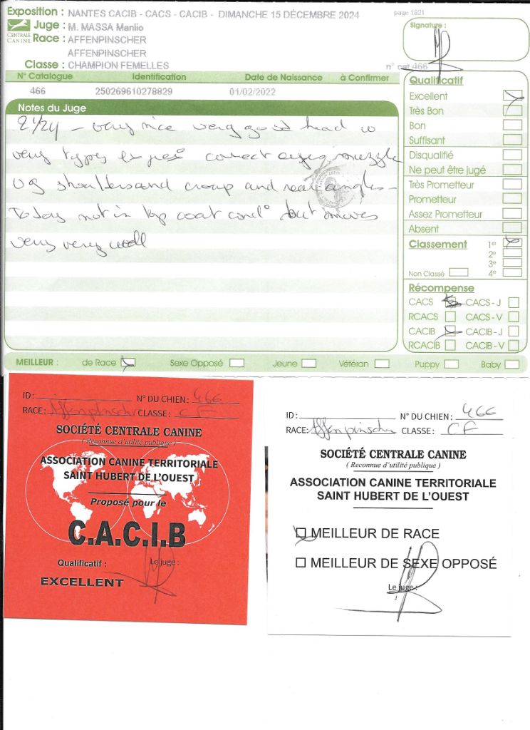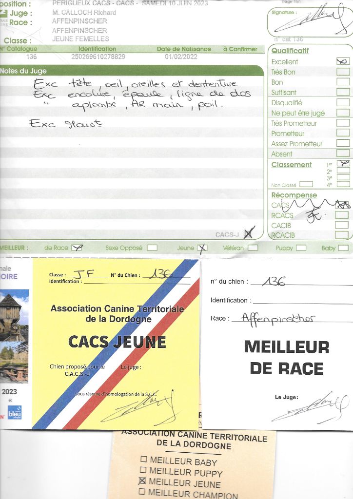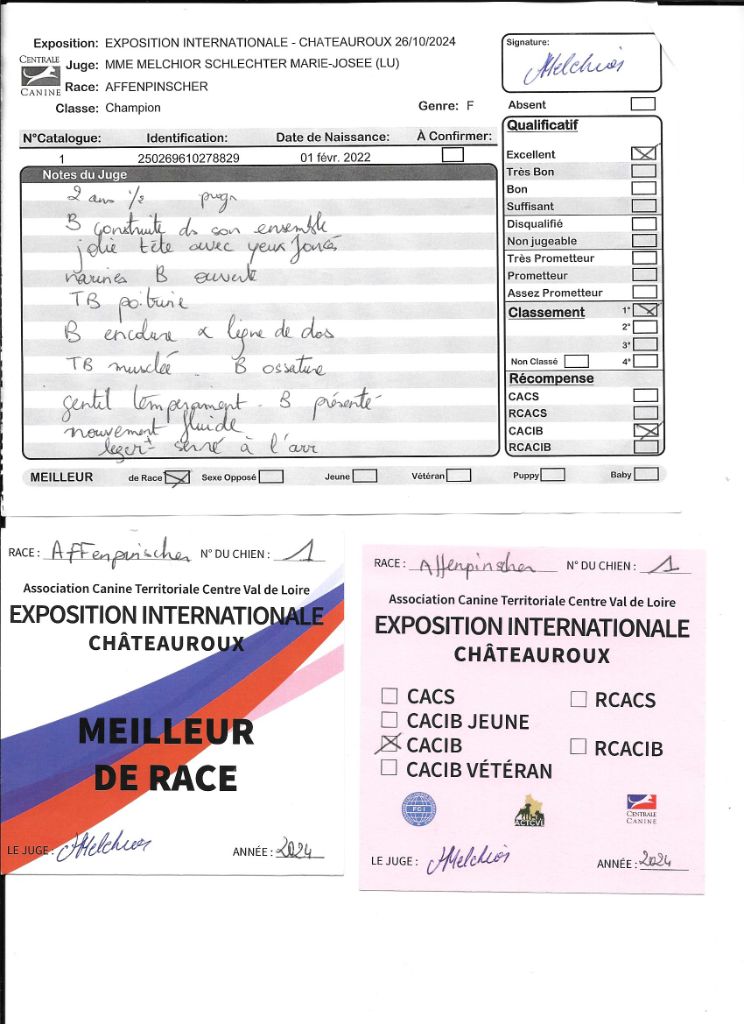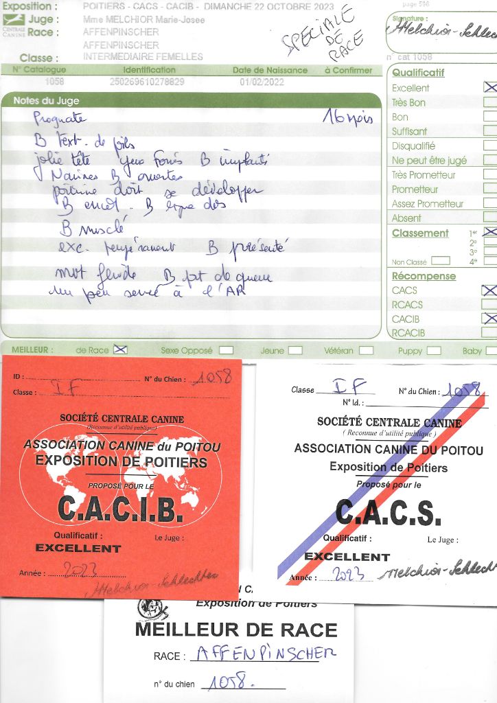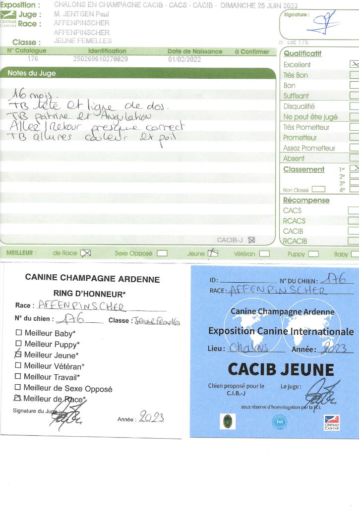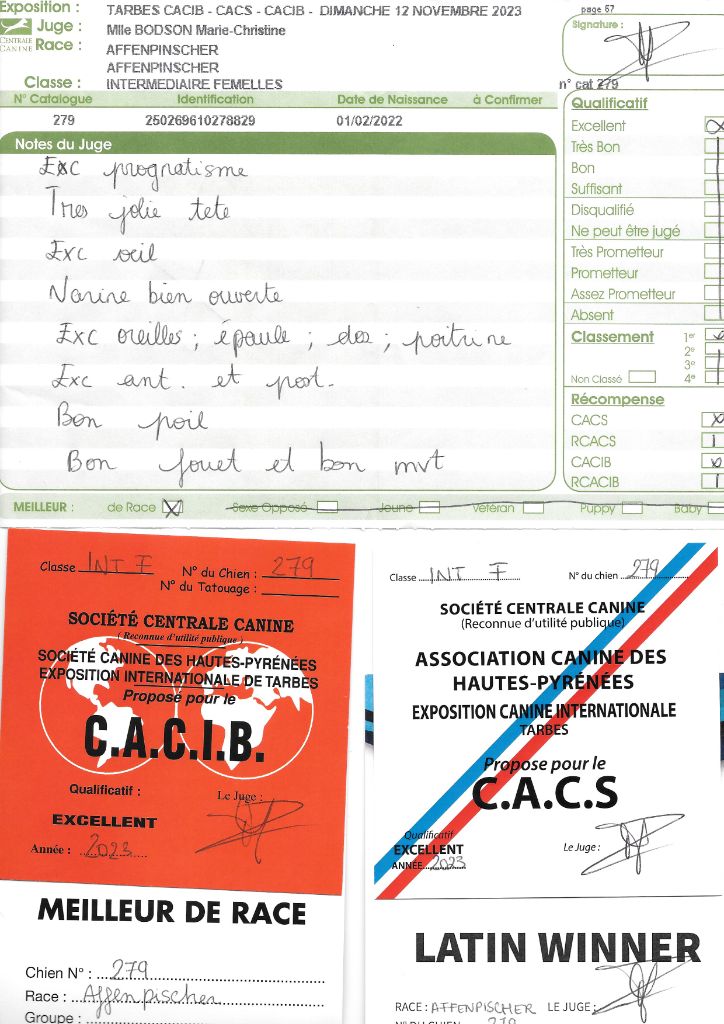 - MEILLEUR JEUNE , MEILLEUR de RACE, CACIB Jeune