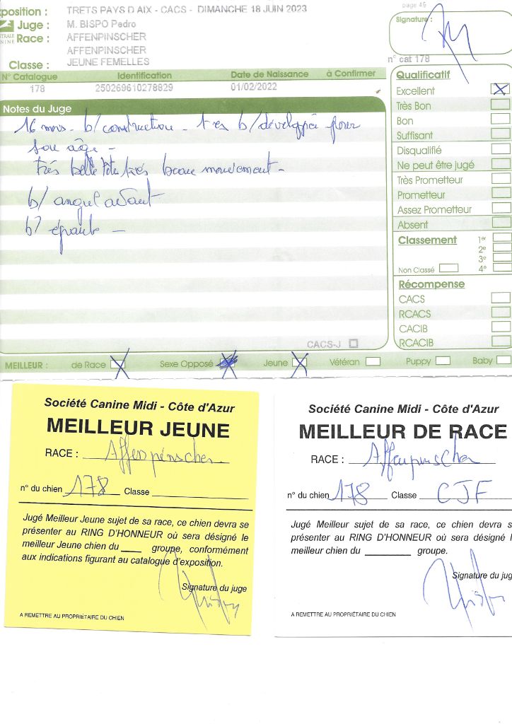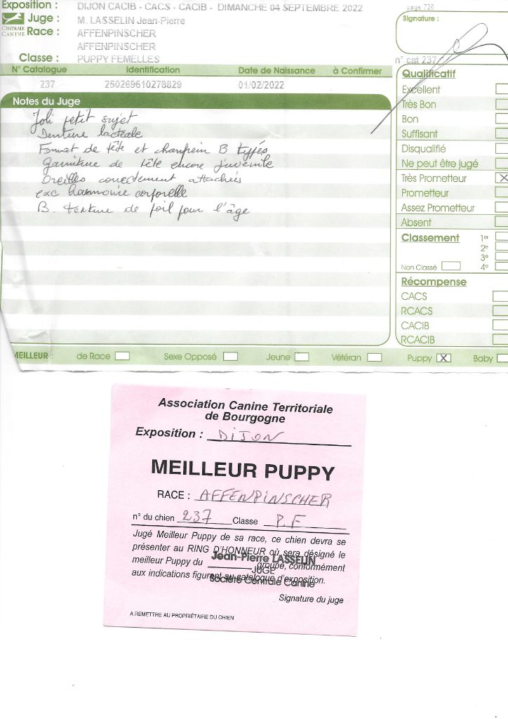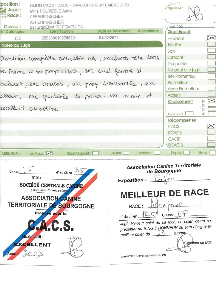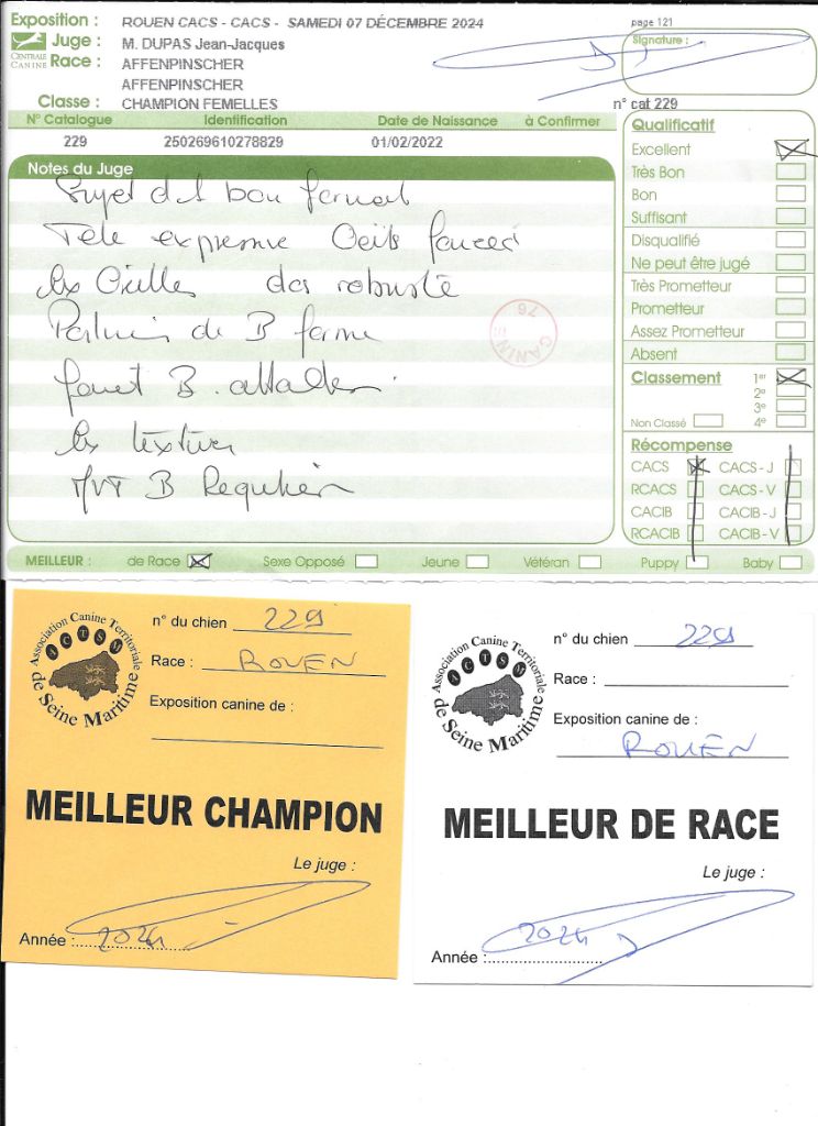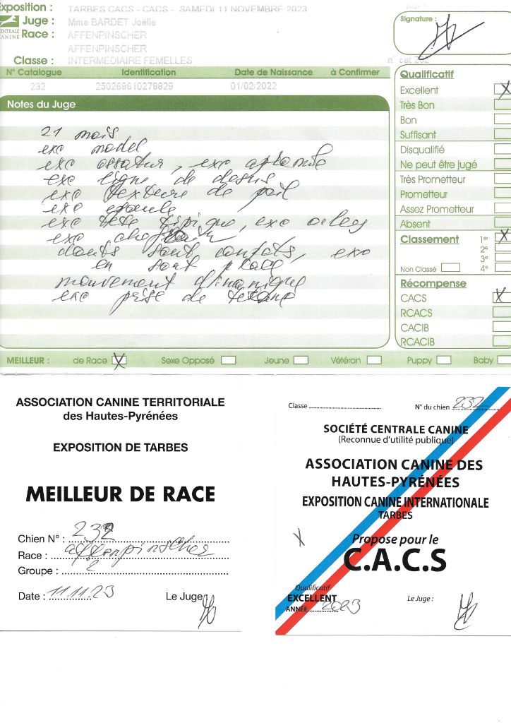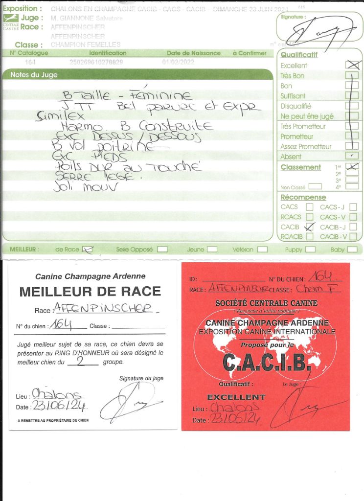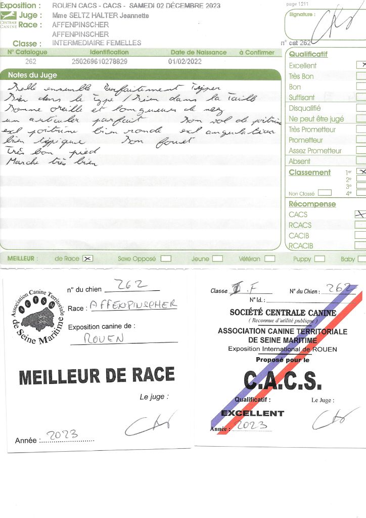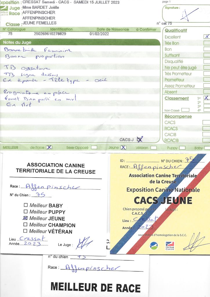 - MEILLEUR JEUNE , MEILLEUR de RACE, CACIB Jeune