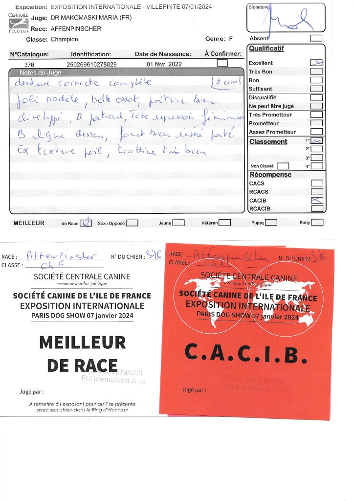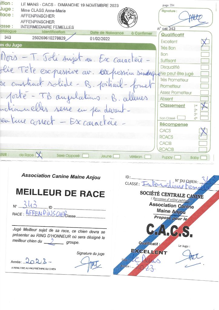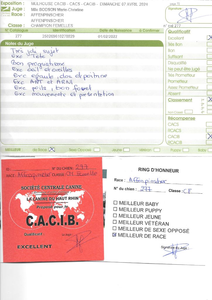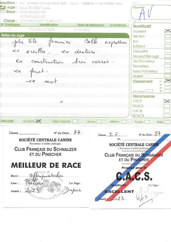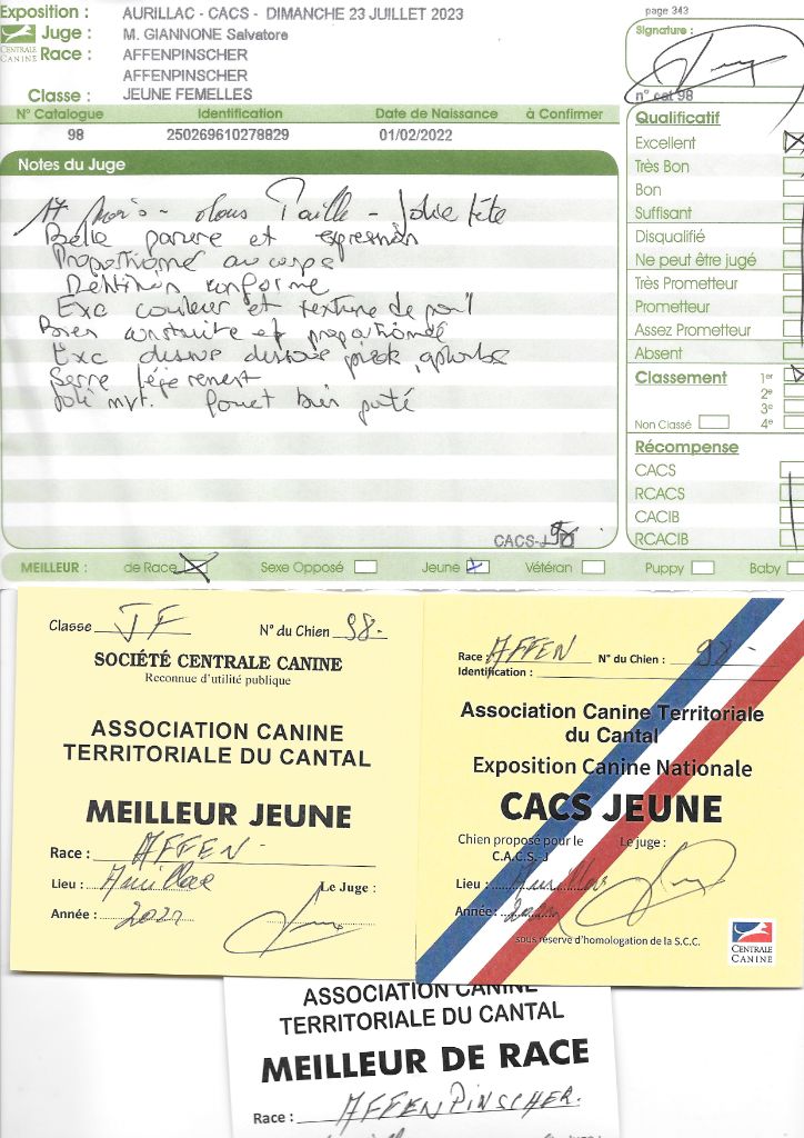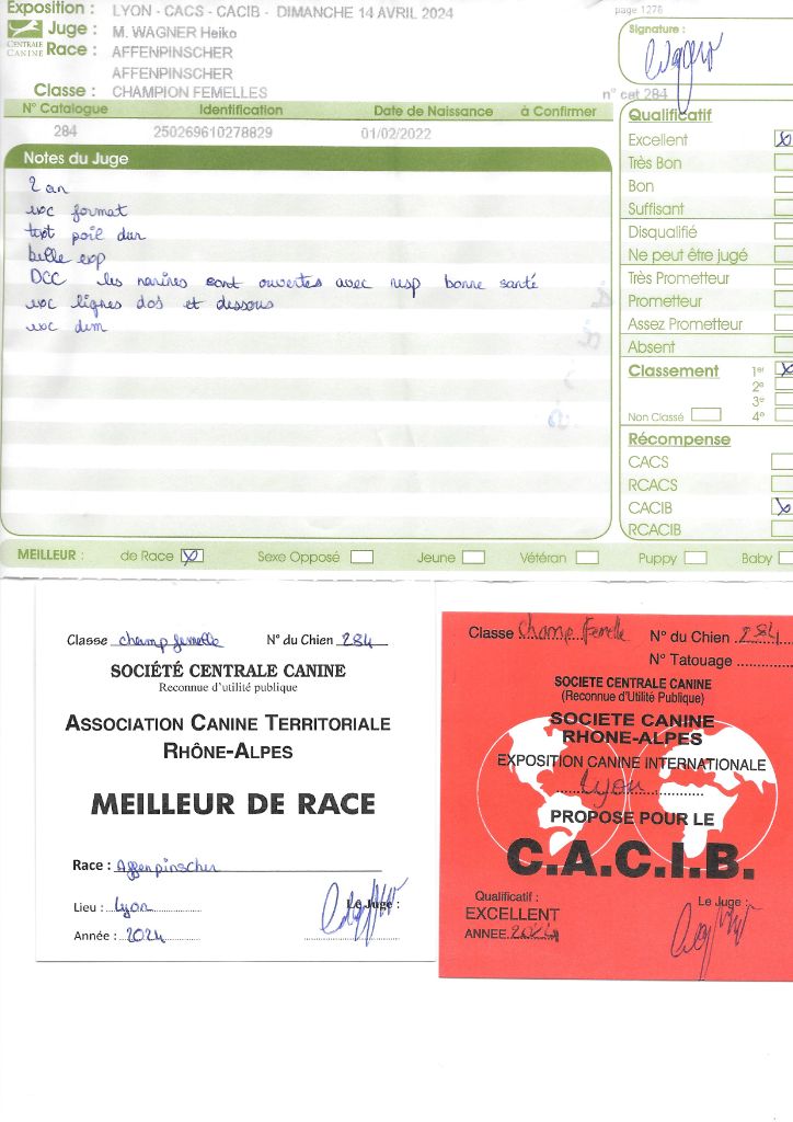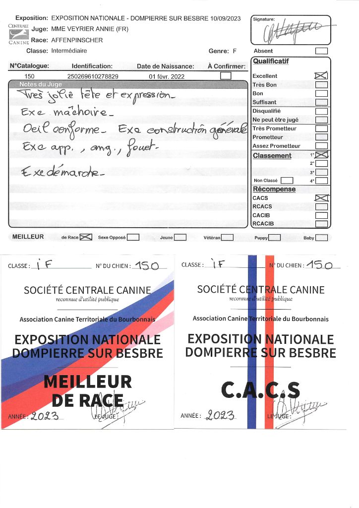 - MEILLEUR JEUNE , MEILLEUR de RACE, CACIB Jeune