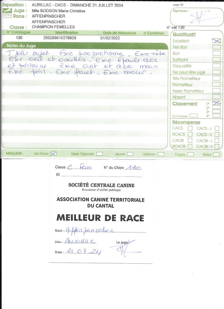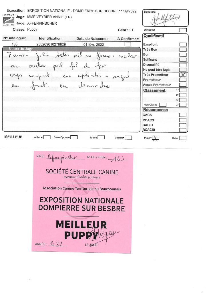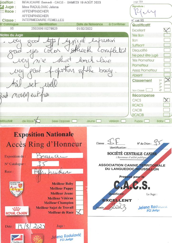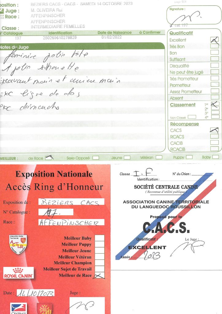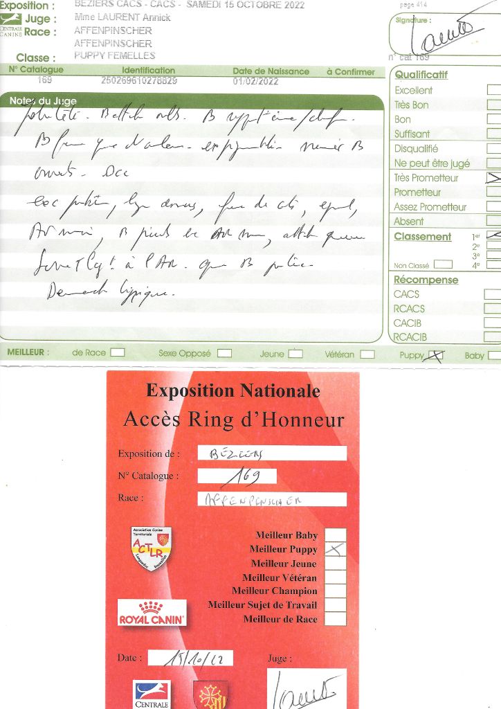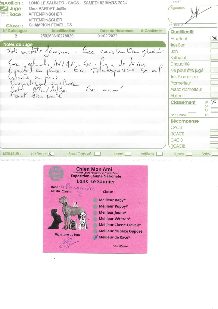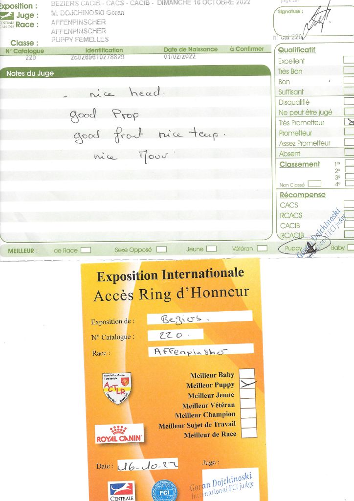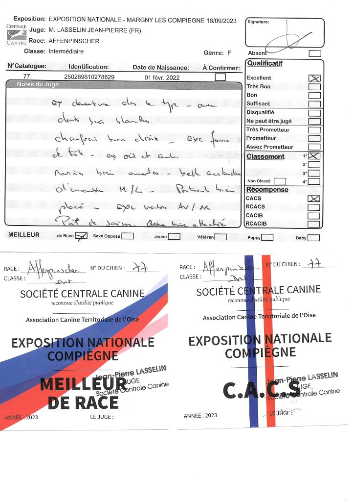 - MEILLEUR JEUNE , MEILLEUR de RACE, CACIB Jeune