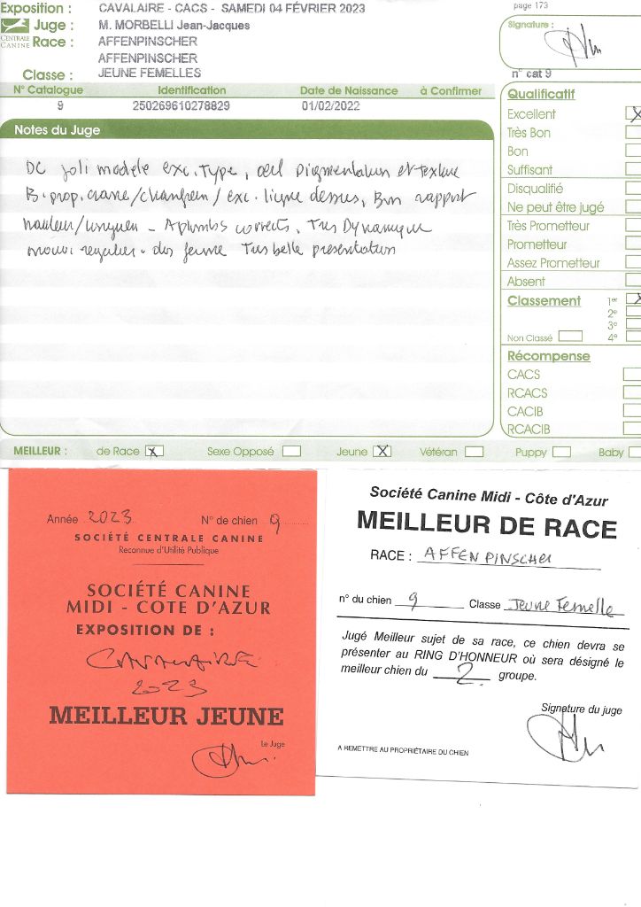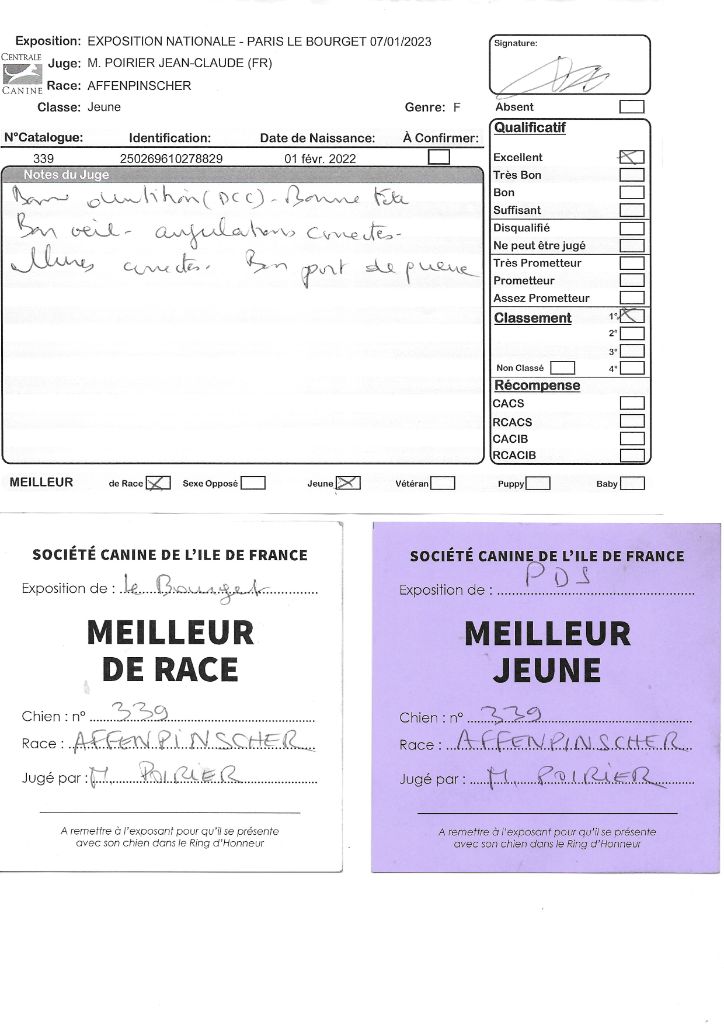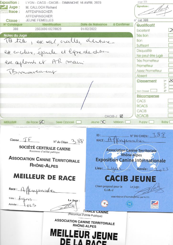 - MEILLEUR JEUNE , MEILEUR de RACE, CACIB jeune